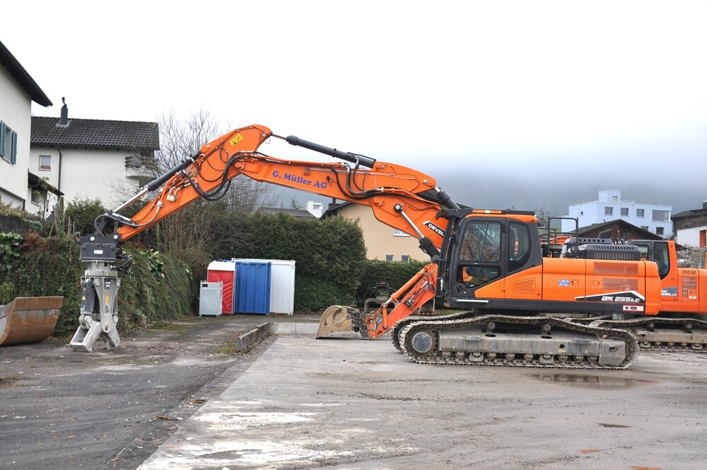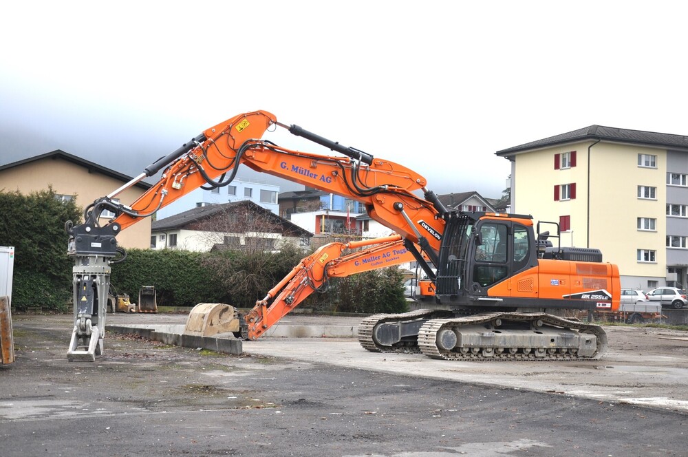 Tessenderlo-Ham (Belgien) - Das Schweizer Bauunternehmen Keller aus Rheineck am Bodensee beschäftigt rund 100 MitarbeiterInnen und wurde bereits im Jahr 1979 gegründet. Heute ist das Familienunternehmen, geleitet von den zwei Geschwistern Andreas und Michael Keller, in den Bereichen Hochbau, Tief- und Erdbau tätig und erbringt jährlich Bauleistungen in zweistelliger Millionenhöhe. Seit 2008 besteht die Geschäftsbeziehung zum HD Hyundai-Vertragshändler BAMAG aus Regensdorf. Seit 2015 werden verstärkt HD Hyundai Bagger für den rund 20 Einheiten umfassenden Maschinenpark bei der BAMAG beschafft. Bauforum24 Artikel (06.10.2025): Hyundai Dumper HA30A und HA45A Der neue Hyundai-Kettenbagger HX300A der Keller Bauunternehmung AG bei Betonierarbeiten mit einem 1.200 l fassenden Betonkübel. Mit Verstellausleger und Zusatzstiel erreicht der 30-t-Bagger eine Ausladung von 13.078 mm mit einer Resttraglast von 3.000 kg. Im März 2025 wurde der jüngste Hyundai-Neuzugang in Betrieb genommen – ein 30 t schwerer Hydraulikbagger HX300A mit Verstellausleger und 3.050 mm langem Stiel. Besonderheit ist die von Echle-Hartstahl umgerüstete Kabine zu Kippkabine mit 30 Grad Neigung zur besseren Sicht bei Arbeiten mit Stielverlängerung und Greifer. Zu den weiteren Besonderheiten des Baggers gehören: Hydraulischer Schnellwechsler Typ OilQuick OQ70/55 Zentralschmierung Zusatzverrohrung für Drehwerk/Hammer Sonderlackierung Kippkabine Verstellausleger Der für den Maschinenpark zuständige Andreas Keller führt aus: „Wir haben für unsere immer größere werdenden Baustellen einen schweren Kettenbagger gesucht und da hat uns sowohl die Beratung von BAMAG als auch die Ausführung des Baggers gut gefallen. Wir setzen seit 2015 die Hyundai-Bagger in der Gewichtsklasse von 30 t ein und haben nun einen richtig großen Brocken beschafft, den wir im Abbruch und Erdbau einsetzen.“ Insgesamt verrichten 3 Hyundai Bagger ihren Dienst im grünen Farbkleid bei Keller Bauunternehmung AG. Die Maschinen verbleiben 10-15 Jahre im Fuhrpark und werden dann gegen die neusten Modelle ausgetauscht. Wie alle Großgeräte bei Keller wird auch der HX300ANL, der bei Keller jährlich rund 1.000 Betriebsstunden leistet, von einem festen Maschinisten, namens Ötti Breitenmoser bedient. Er lobt die leise Kabine sowie die vielfältigen Einstellmöglichkeiten für hydraulische Anbaugeräte sowie den geringen Dieselverbrauch. Der HX300ANL wird von einem Cummins-Stufe-V-Motor B6.7 mit einer Leistung von 194 kW angetrieben. Er verfügt über ein Abgasnachbehandlungssystem mit Diesel-Oxidationskatalysator (DOC), AdBlue-Injektor (SCR) und Dieselpartikelfilter. Hier wurde die Abgasrückführung (AGR) durch neu entwickelte Technologien ersetzt. Diese bewirken eine deutlich höhere Zuverlässigkeit bei geringerem Kraftstoffverbrauch und reduzierten Betriebskosten. Neben der EPIC-Funktion verfügt der HX300ANL über einige der neuen Hyundai-Technologien: die Eco-Anzeige, die einen ineffizienten Betrieb der Maschine anzeigt und hilft Energieverschwendung zu vermeiden; das MG/MC-System, das den Betriebszustand des Baggers anzeigt und die Ausrüstung automatisch steuert; sowie die automatische Sicherheitssperre, die eine unbeabsichtigte Betätigung der Ausrüstung verhindert und so die Sicherheit für den Fahrer und am Einsatzort erhöht. Um die Verfügbarkeit zu verbessern, sind Bagger der A-Serie mit Funktionen wie der vernetzten Motordiagnose (ECD) ausgestattet, die Monteure und Betreiber mit Diagnoseberichten unterstützen und die Fernüberwachung verbessern; sowie der vernetzten Maschinendiagnosefunktion (MCD), die die Analyse der verschiedenen in HiMATE Leistungsdaten erfassen. Eine weitere nützliche Diagnosefunktion ist das HCE-DT Tool, das authentifizierten Benutzern über Hi MATE Informationen zur Fehlerbehebung liefert. Darüber hinaus liefert Hi MATE per EMail für die Flottenverwaltung nützliche monatliche Berichte mit einer Zusammenfassung der Betriebsdaten und einer Kraftstoffverbrauchsanalyse. Der Bagger wird auch in einer Long-Reach-Version mit 10.200 mm langem Monoblock und einem 7.850 mm langen Stiel für Böschungsarbeiten angeboten. Technische Daten HX300A: Motorleistung: 194 kW Tankvolumen: 500 l Diesel, 70 l AdBlue, 330 l Hydrauliköl Gewicht (mit Verstellausleger 6.250 mm): 31.000 kg Bodenplatten: 600 bis 900 mm Löffelgrößen. 1,27 bis 1,85 m3 Losbrechkraft: 192 kN Heckschwenkradius: 3.210 mm Weitere Informationen: Hyundai Construction Equipment Europe | © Fotos: Hyundai | BAMAG