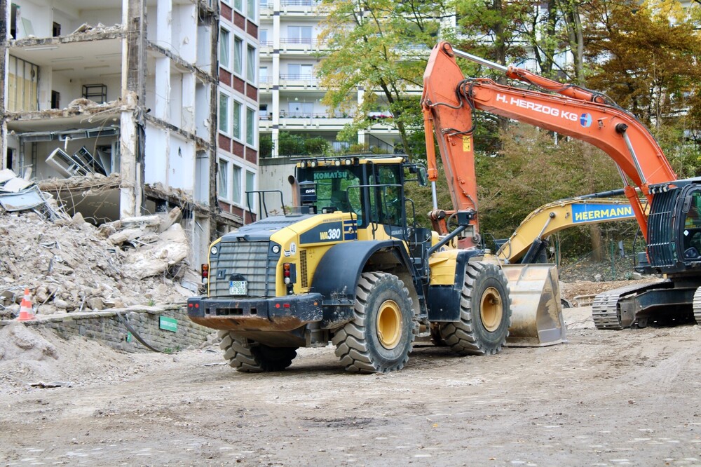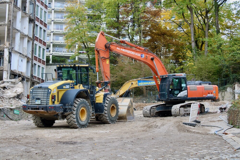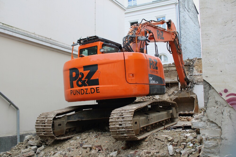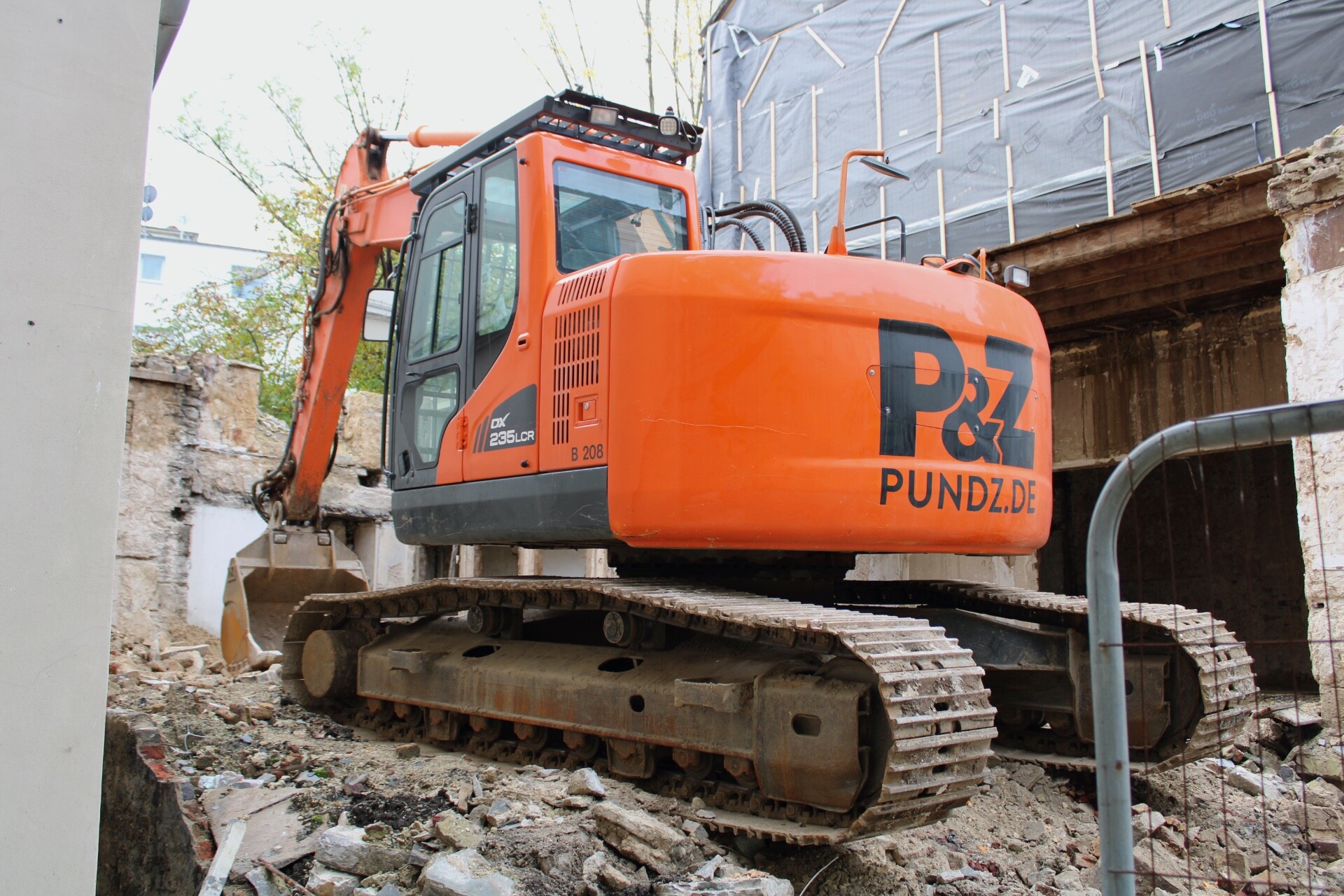 P&Z hat akutell eine kleine Baustelle in Wuppertal. In der Elberfelder Innenstadt war dieses Haus gefühlt bald ein Jahr lang eingerüstet und ich hatte auf Entkernung und Sanierung getippt. Vor ein paar Wochen hat man das Haus dann aber doch abgebrochen und aktuell hat P&Z dort seinen Doosan DX235 LCR im Einsatz.