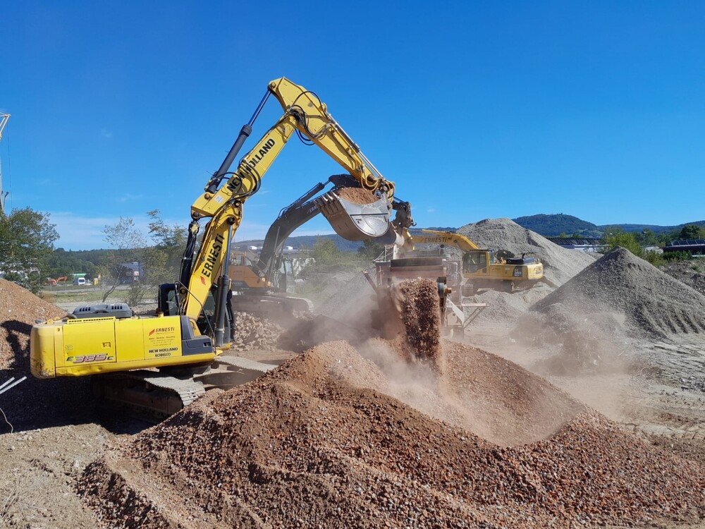 Caterpillar 374D und 390F Triple Abbruchbagger von Van Tunen. Beiden mit Epiroc HB 7000 Hydraulikhammer.