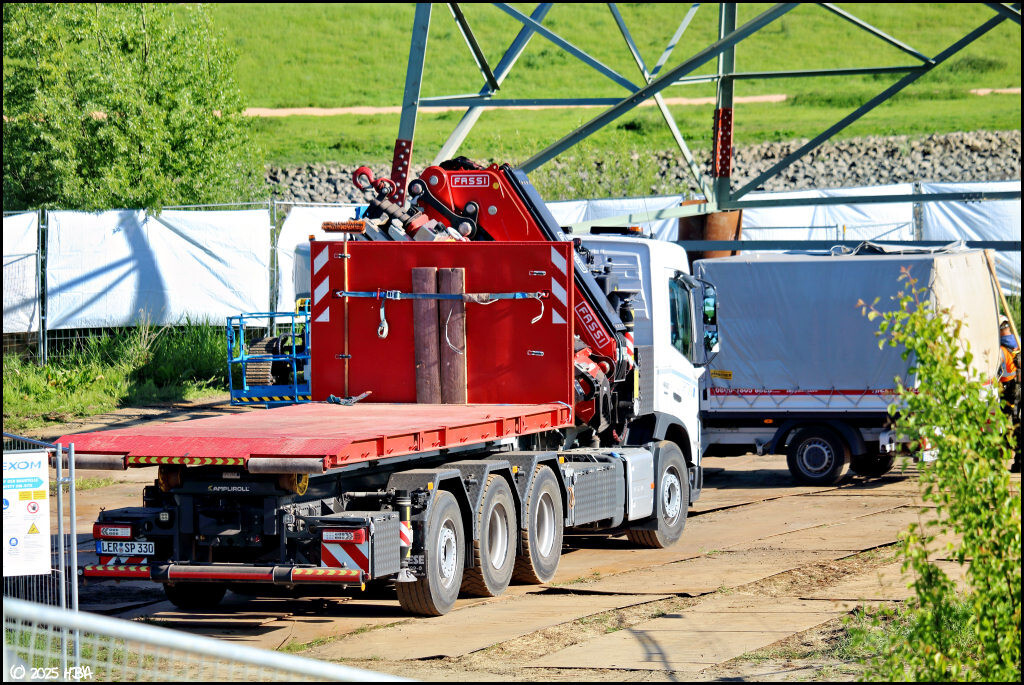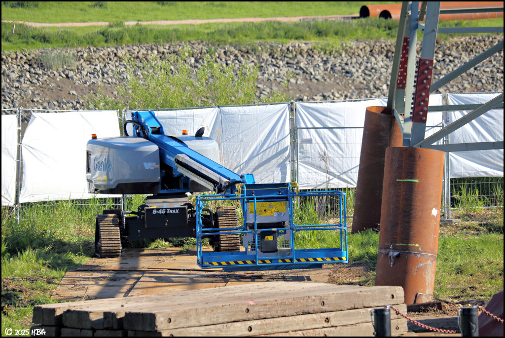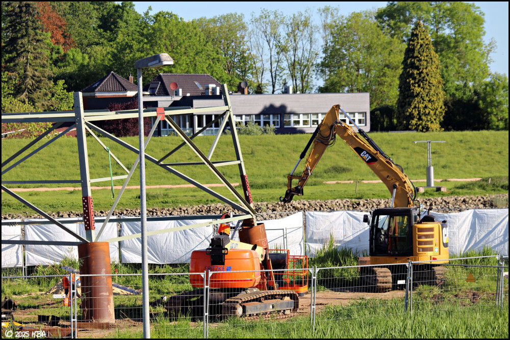Zumindest auf einer Schleusenseite gingen auch Mitte Mai die Arbeiten an der Strommasten-Erhöhung im Papenburger Hafen weiter.