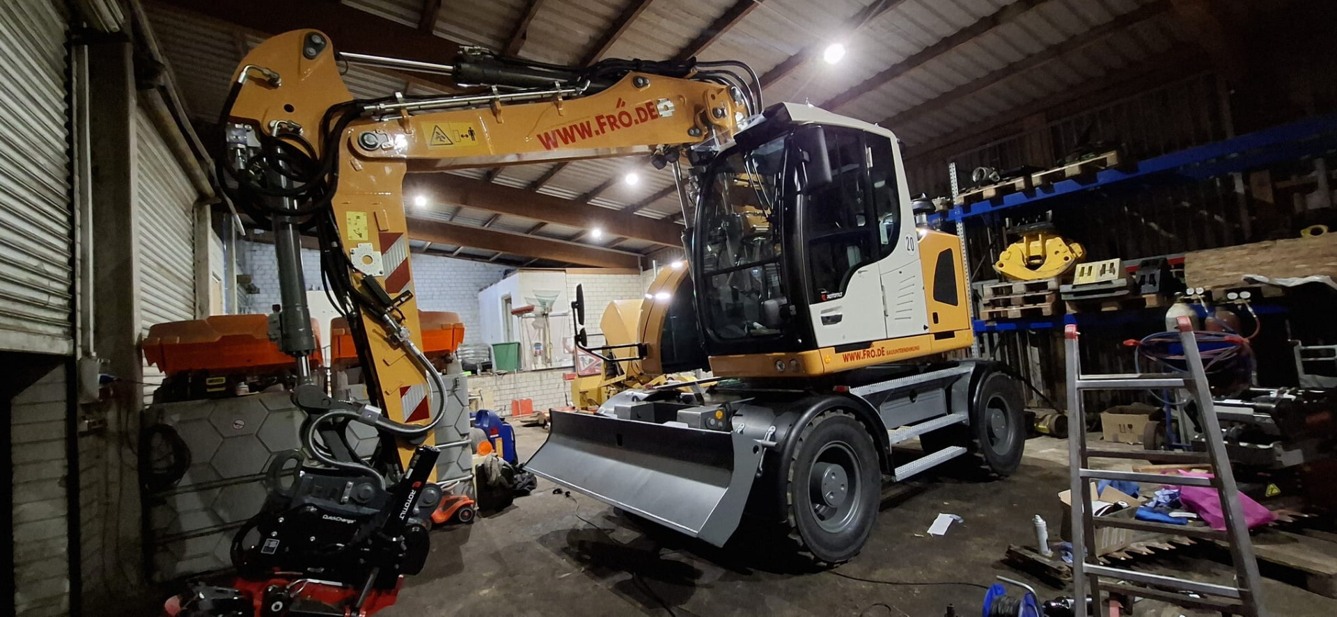 Auf einer Baustelle in MG habe ich diesen Liebherr A920 und einen ziemlich neuen Volvo FMX Vierachser mit Hakengerät gefunden. Das müsste der zweite im Fuhrpark sein.