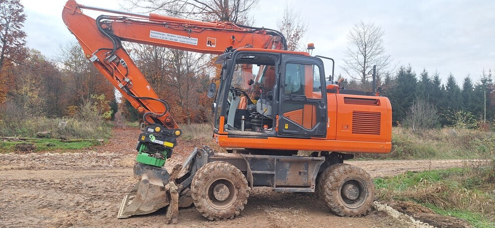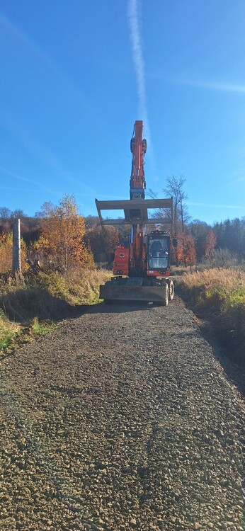 Vor gut 10 Jahren habe ich einen Fuchs F712M aus einer Insolvenz vor dem Schrott gerettet. Es ist kein richtiger Oldtimer aber glaube ich das erste Modell mit automatischer Schwenkbremse. 80er Tieflöffel und Greifer waren dabei aber wechseln geht nicht unter einer Stunde und braucht zwei Personen. Alle Kolbenstangen am Verstellarm (!) waren offensichtlich von Abrissarbeiten über Steinschlag teilweise stark beschädigt. Ich habe die Zylinder am Arm durch Aufschweissen der Kolbenstange mit Edelstahlelektrode und anschliessendem polieren abgedichtet und am gesamten Arm neue Schläuche montiert. Ausserdem ein Motorschaden am Perkins 1004 wegen eines undichten Kühlreislaufes. Den konnte man aber durch hartlöten noch relativ glimpflich flicken. Seither hat das gute Teile bei mir hinter dem Haus etwa 3000 cbm ausgehoben und hier und da in der Ortschaft auch Abwasserohre saniert und Trockenmauern aus gespaltenen Muschelkalksteinen gebaut. Einen Meisel den ich Anfangs mal nachrüsten wollte habe ich bis heute nicht gebraucht. Dafür habe ich mir beim Aushebeln von einem Baumstumpf eine Zahn am kleinen Tieflöffel ausgerissen. Da hat sich aber herausgestellt, daß zuvor schon ein Riss war der unterrostet gewesen ist. Ist geschweisst und tut soweit auch wieder. Ausserdem habe ich einen 2m breiten schwenkbaren Grabnenräumlöffel aus China zum Einebnen von Flächen mit einem eigenen Direktanbau-Adapter montiert. Funktioniert auch, aber ich habe noch keine Übung beim Arbeiten damit alles schön eben wird. Eine Greifer habe ich auch, aber Löffel wechseln geht nicht unter einer Stunde und braucht zwei Personen. Nun gibt es nach einiger Standzeit neue Defizite wo es was zum Schrauben gibt. Das Dringenste ist eine größere Ölleckage an einem der Lenkzylinder hinten. In der Woche tropfen etwa 100ml Öl ab. Dabei ist festzustellen, daß die Leckage gar nicht aus dem Zylinder selbst kommt sondern aus dem relativ porös ausschauenden Schlauch bzw. dessen Crimpverbindung. Der geht nach vorne zum Drehverteiler. Der tropft nicht wirklich stark ab, könnte aber auch trockener sein. Ich muß nach etwas Putzen da noch mal nachforschen ob es auch von den Schläuchen kommt oder ob der Drehverteiler raus muß. Das Hydrauliköl ist mit seiner schwarzen Farbe auch nicht mehr wirklich vertrauenserweckend. Ich habe immer nur nachgefüllt. Ausserdem ist der Endschalldämpfer am Ende. Autogenschweissen ist vermutlich nicht mehr sinnvoll wenn man bei Kiesel noch Ersatz bekommt. Die Fuchs Teile Nr. ist 6032016003 und ich bin für alle Tipps dankbar. Bei der Hydraulik bin ich mir nicht sicher wie ich vorgehen kann. Muß man vor Demontage des Schlauchs wegen der tiefliegenden Position das gesamte Hydrauliköl ablassen damit es nicht rausläuft? Wie sind die Empfehlungen der Spezialisten für den Drehverteiler bei diesem Baujahr? Einfach mal putzen und die Schläuche unter Generalverdacht stellen und nach und nach tauschen?