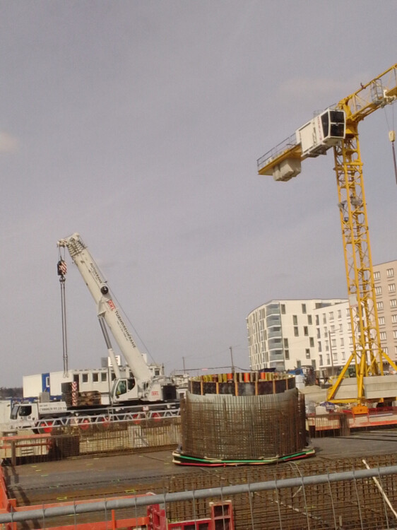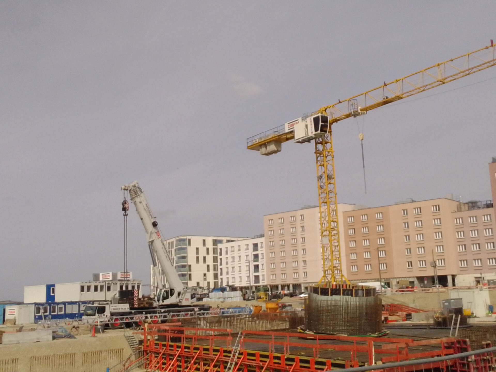 Und wieder was von Bracht. Diesmal einer der neuen Grove Krane mit Ballasttransporter auf einer Baustelle in MG,