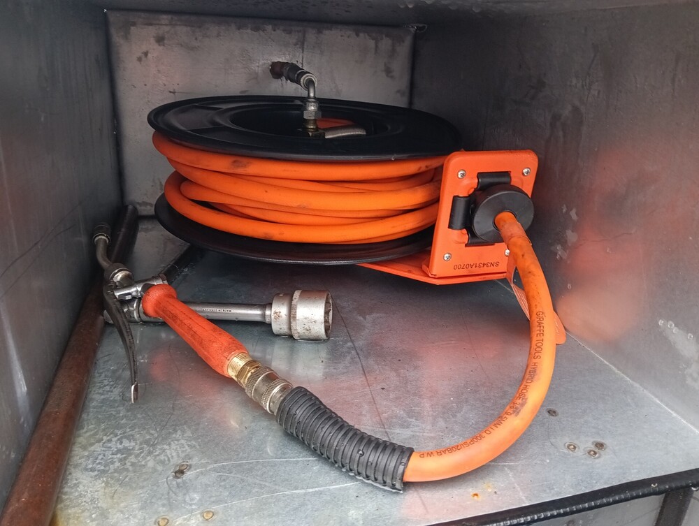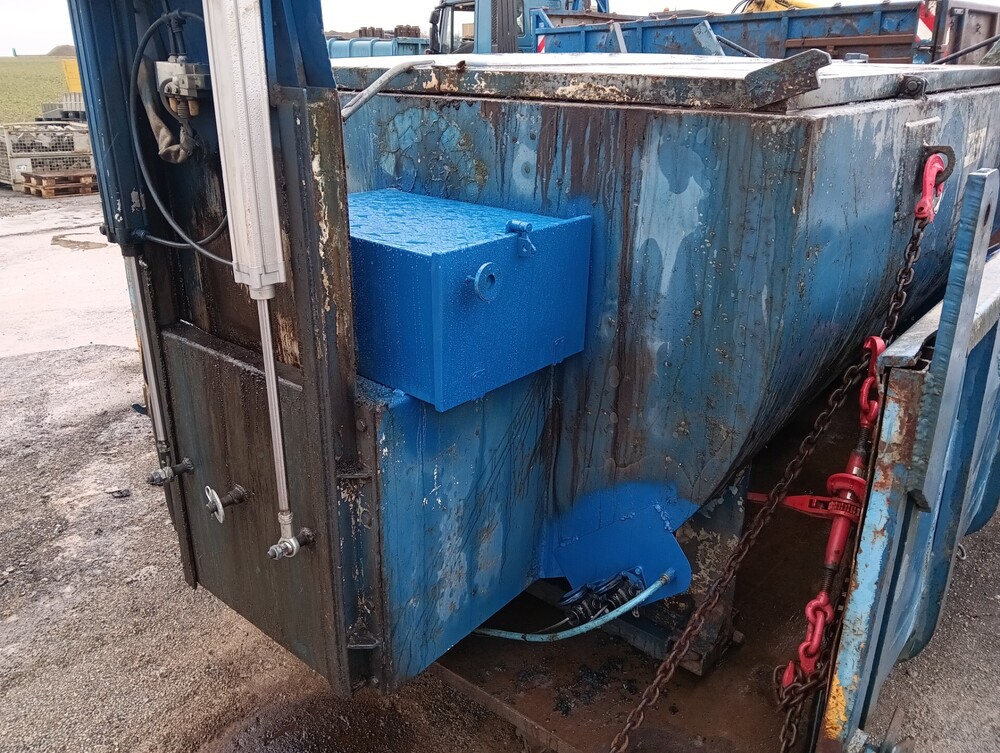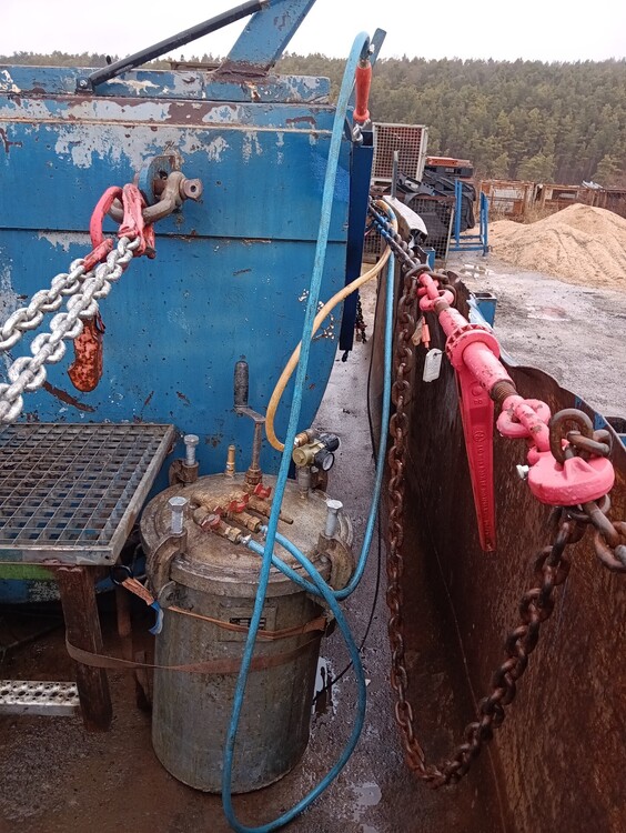 2. Wie einige hier aus dem Forum aus dem privaten Kontakt wissen, versuche ich ja immer etwas anders zu denken und hab deshalb unser Thermofass "etwas" modifiziert. Angefangen hat alles vor 2 oder 3 Jahren als ich auf die blöde Idee gekommen bin, man könnte ja einen Mann einsparen (wenn wir mit dem Bagger Tragschicht einbauen) wenn der Schieber mit Funk auf und zu gehen würde. Also haben wir uns in die Werkstatt gestellt und einfach mal angefangen. Rausgekommen ist ein Schieber der mit Druckluft auf und zu geht und das noch mit Funk aus dem Bagger. Einige Zeit später ging es weiter... Es wäre ja schön, wenn man immer etwas Wasser dabei hat. Also wieder in die Werkstatt und ein 200l Wasserfass drauf gebaut. Wobei mir das noch nicht so richtig gut gefällt. Funktioniert aber. Hab dann im letzten Jahr öfters mal Asphalt für andere Firmen gefahren. Bei jeder Kollone ist mir aufgefallen, das alle jammern das Trennmittel funktioniert nicht richtig und sie immer noch Diesel nehmen. Da meine Jungs von dem Zeug von BayWa, iwetec und Co auch nicht zufrieden sein, haben wir uns mal Schlau gemacht. Raus kam, dass Sojaöl auch funktioniert und viel günstiger ist. Hab bei meinem "Dealer" 0,90€ für den Liter bezahlt. Vor ein paar Wochen haben wir uns wieder in die Werkstatt verdrückt und einen 45l Druckbehälter mit 24v Heizung drauf gebaut. Da man ja nicht nur das Fass sondern auch das Werkzeug gleich mit einnebeln kann, gab es noch ein 15m Schlauchpaket dazu.8