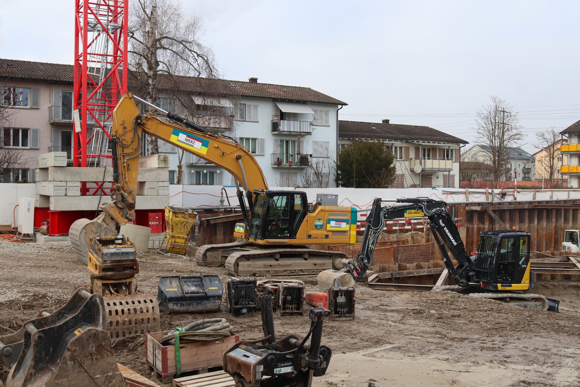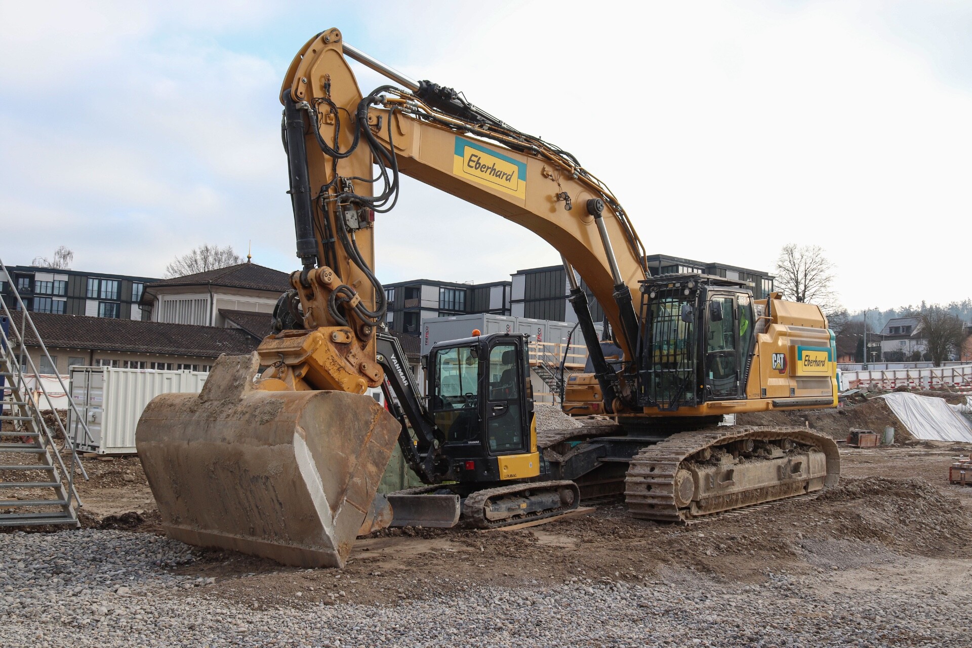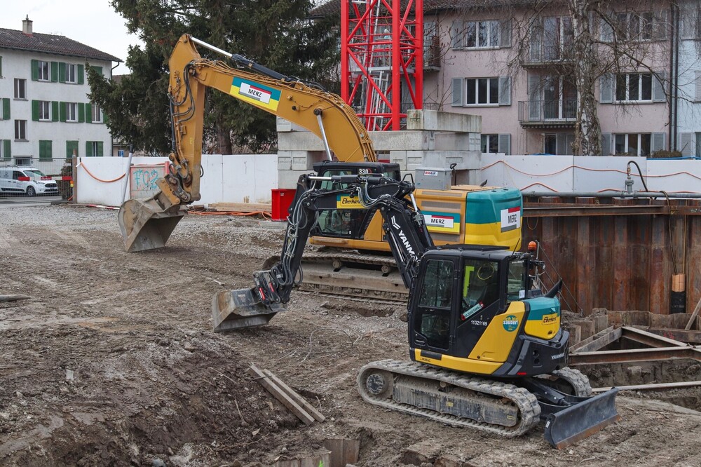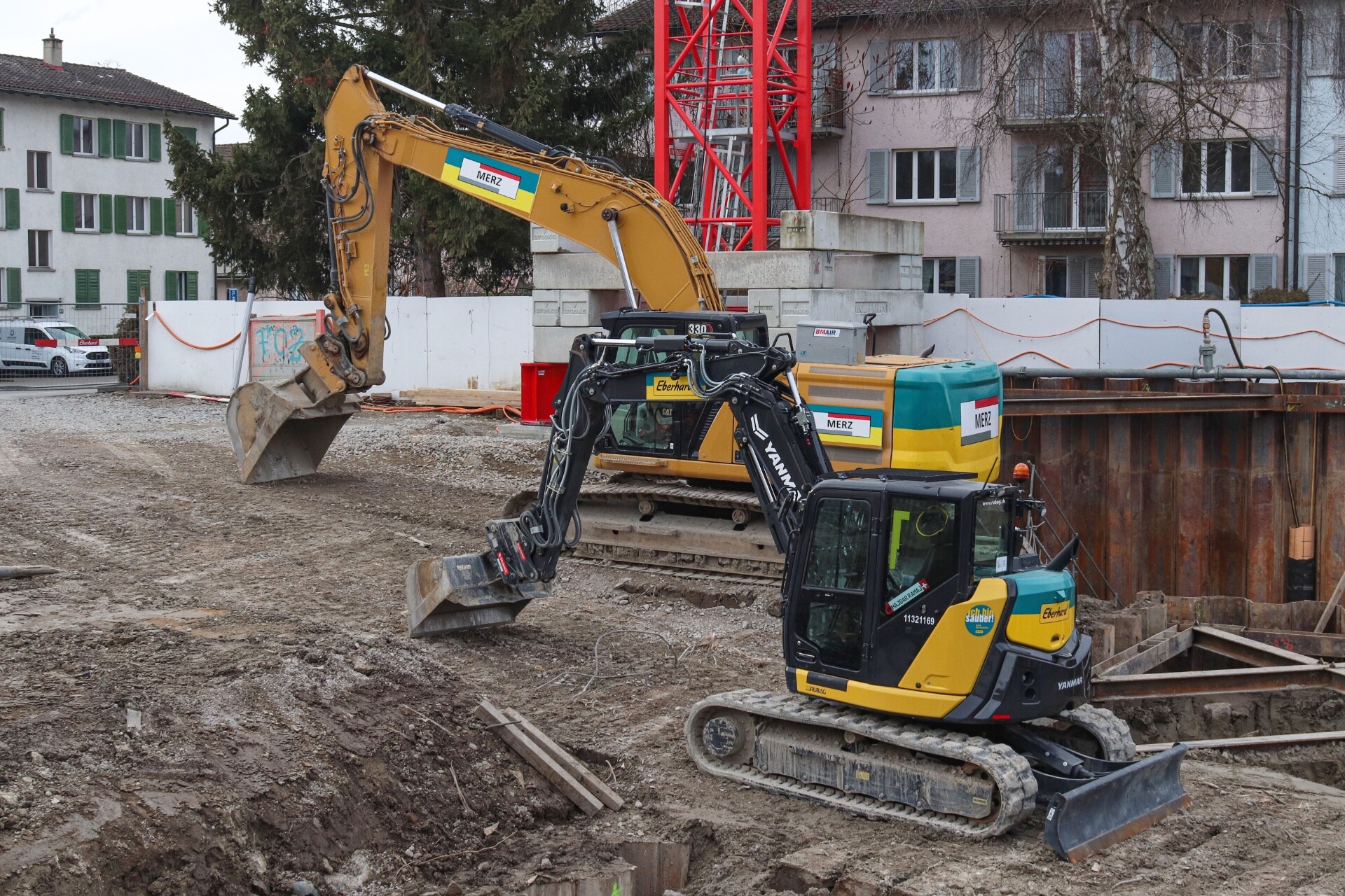 Weihnachtspause auf zwei Baustellen in Zürich-Schwamendingen Cat 352 mit Yanmar ViO 38-7 unter dem Arm Cat 330 und Yanmar SV 100-7