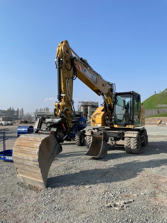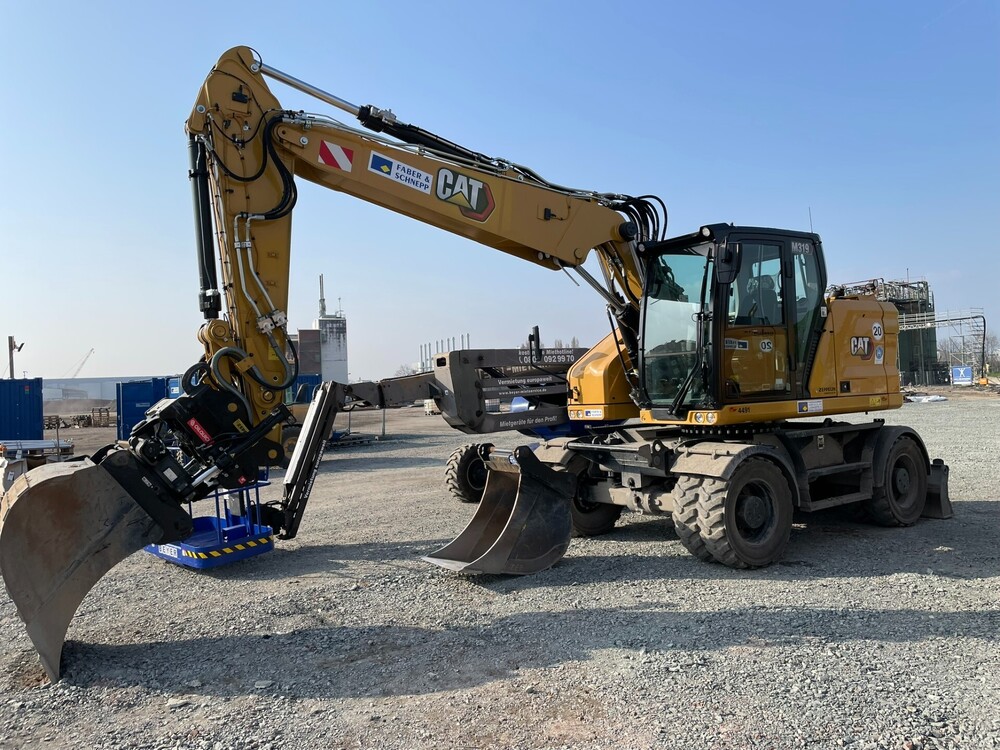 Riesige Bunkerabbruch in Krefeld durch Laarakkers. Mit der Caterpillar 374F STC UHD Abbruchbagger. Mit kurzem Ausleger und VTP FP 55 pulversierer.