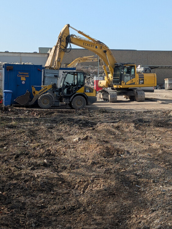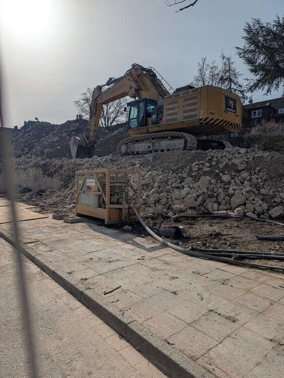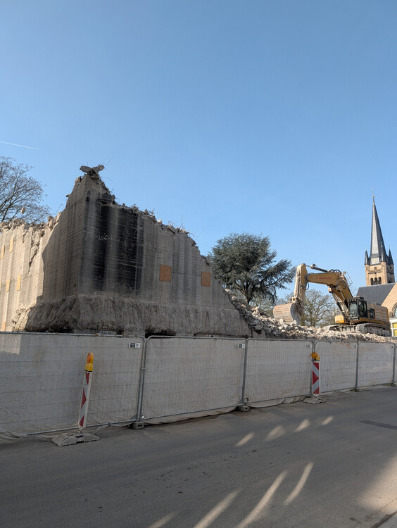 25. Update 8.3.: Der Abbruch ist seit Ende der Woche offiziell beendet. Die Firma Rino hat nur noch einen Liebherr R946 auf der Baustelle stehen, der auf seinen Abtransport wartet. Es wurde ein Fundament für den bald kommenden Turmdrehkran gebaut, dies ist durch 4 Bohrpfähle im Boden verankert. Den restlichen Erdbau bzw. Aushub übernimmt die Firma Furkert Erdbau. Ich bedanke mich für das Interesse an meinem Beitrag.