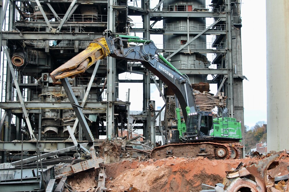 Heute wurden weitere Teile des Kraftwerks Elverlingsen in Werdohl gesprengt. Diesmal waren die beiden 200 und 280 Meter hohen Schornsteine der Blöcke E3 und E4 an der Reihe.