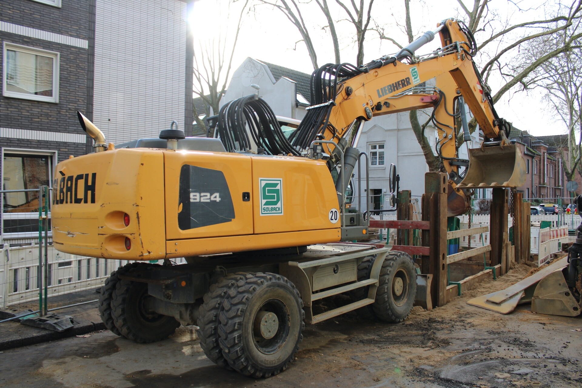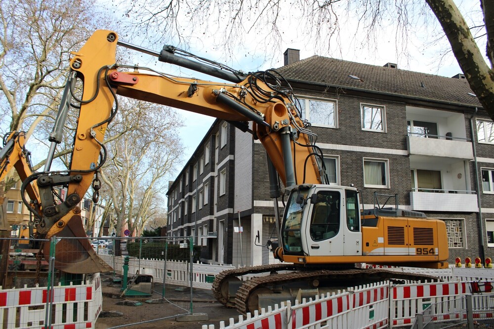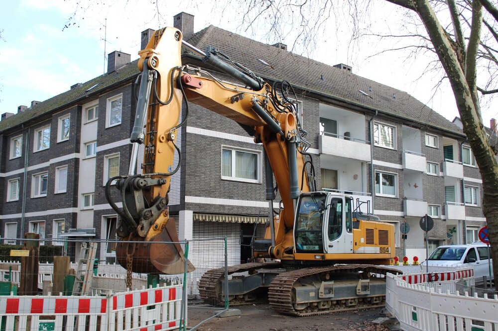 Die Umverlegung der Kreisstrasse 158 bei Papenburg Anfang November 2025: An der Brücke über die Bahnstrecke wurde gleich mit zwei Pumpen betoniert, die Fahrmischer pendelten unermüdlich. Gleichzeitig wurden die Rampen zu beiden Seiten weiter aufgeschüttet und verdichtet. Am Parkplatz mit dem Schotterlager hatte ein Volvo inzwischen die Verladung übernommen.