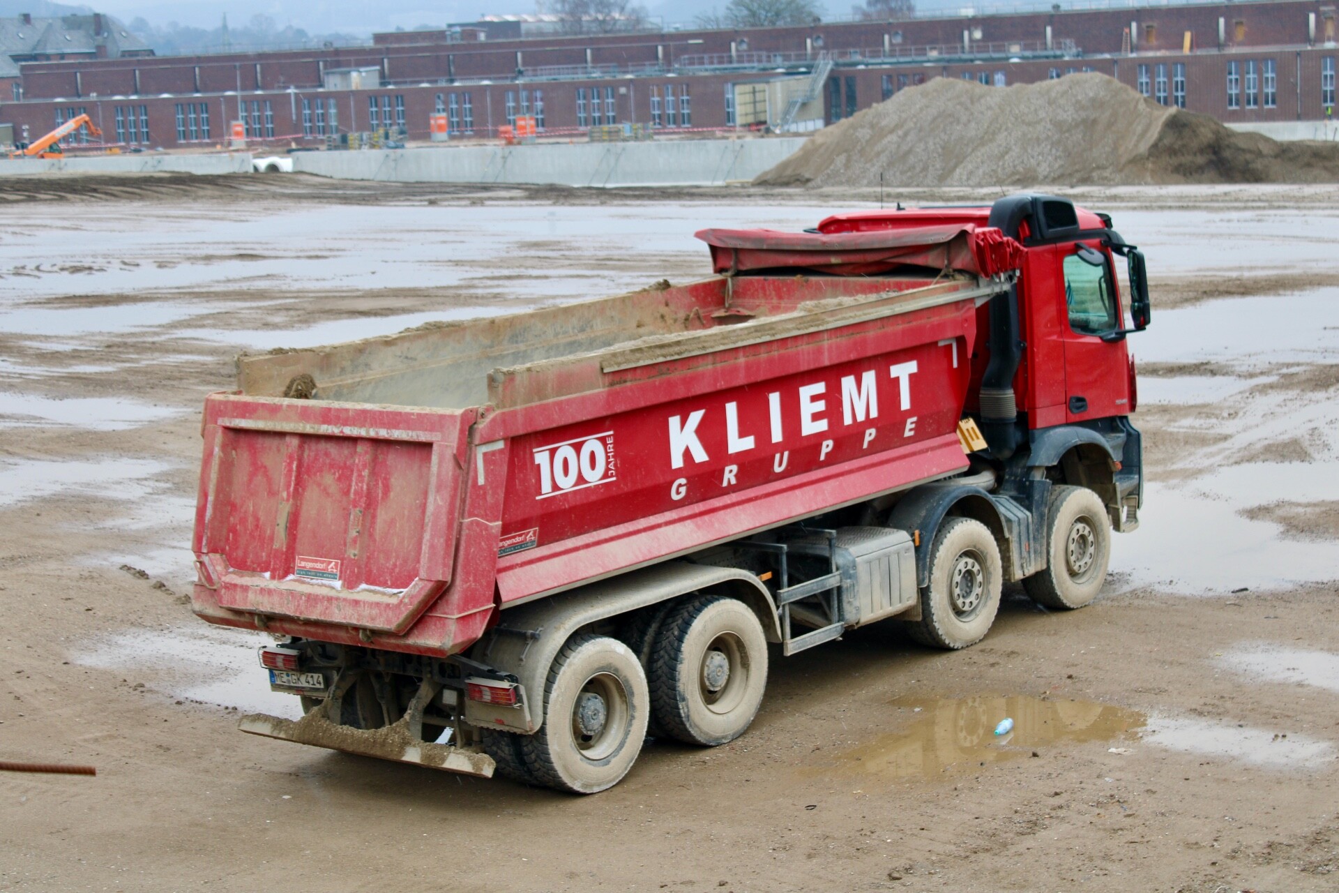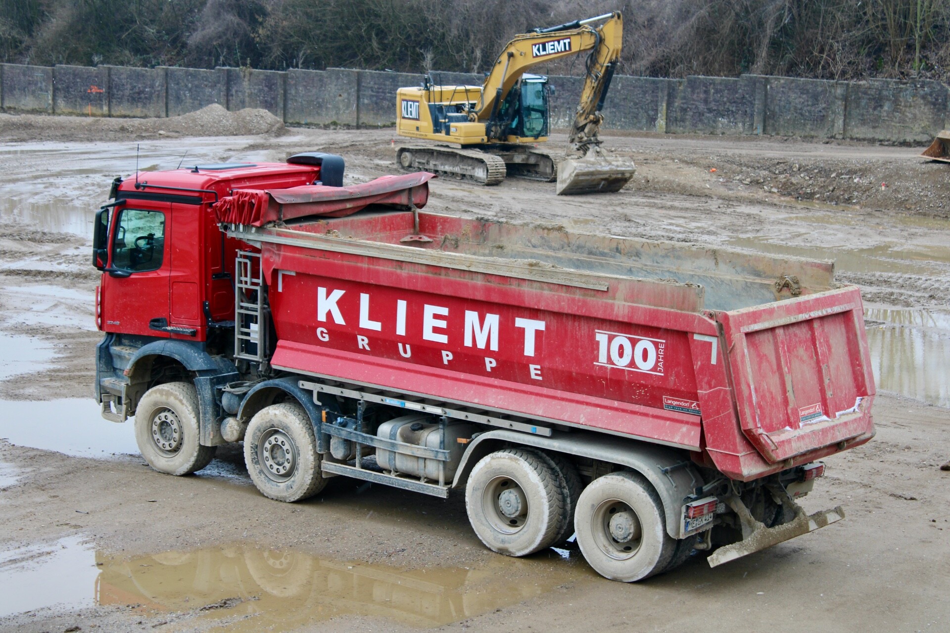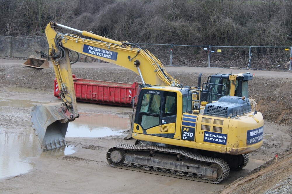 Auf der Baustelle in Wuppertal habe ich vor ein paar Wochen diesen Mercedes Benz Actros Vierachser abgelichtet. Ebenfalls auf der Baustelle im Einsatz ist ein Komatsu PC210 von Rhein Ruhr Recycling.