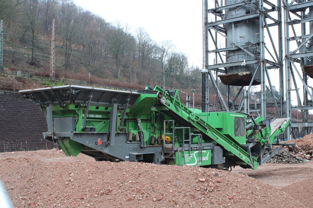 Sennebogen 6100E duty cycle crane in einer Kiesgrube. -