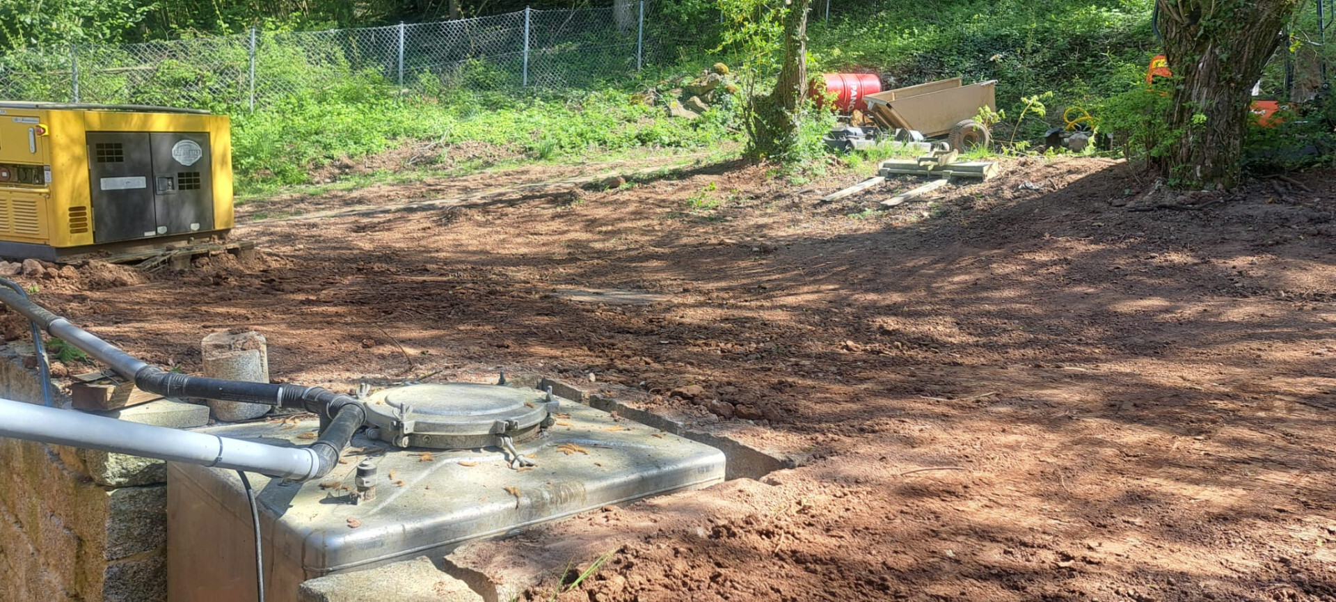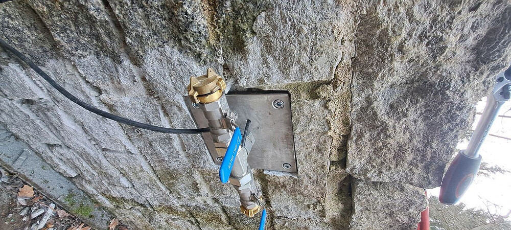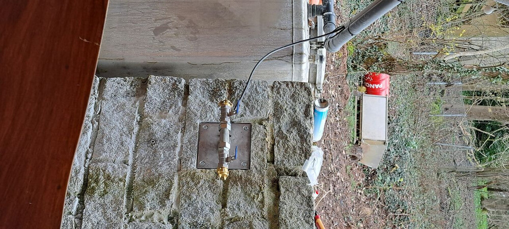 Es geht in die Schlussphase in Sachen Regenwasserzisterne .......... Hier die Technik/Entnahme Dazu ne Platte aus Edelstahl angefertigt für Wasserhahn und Durchführung Strom /Pneumatik.... In der Mauer eine Versenkung hergestellt und die Platte mit 4 Ankerschrauben befestigt Nachdem die aufgefüllte Erde sich gut gesetzt hat ,wurde heute aufgefüllt,Steine aussortiert ,verdichtet und auf Schachthöhen-Niveau abgezogen. Somit ist das Projekt Regenwasserzisterne erfolgreich abgeschlossen. - Heute