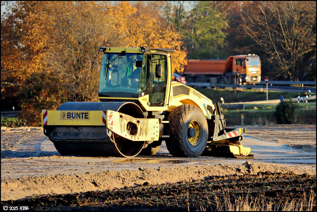 2. Anfang November war Bunte schwer damit beschäftigt, an der neuen Strassenbrücke der zu verlegenden Kreisstrasse 158 Sand für die Auffahrrampen aufzufahren und einzubauen.
