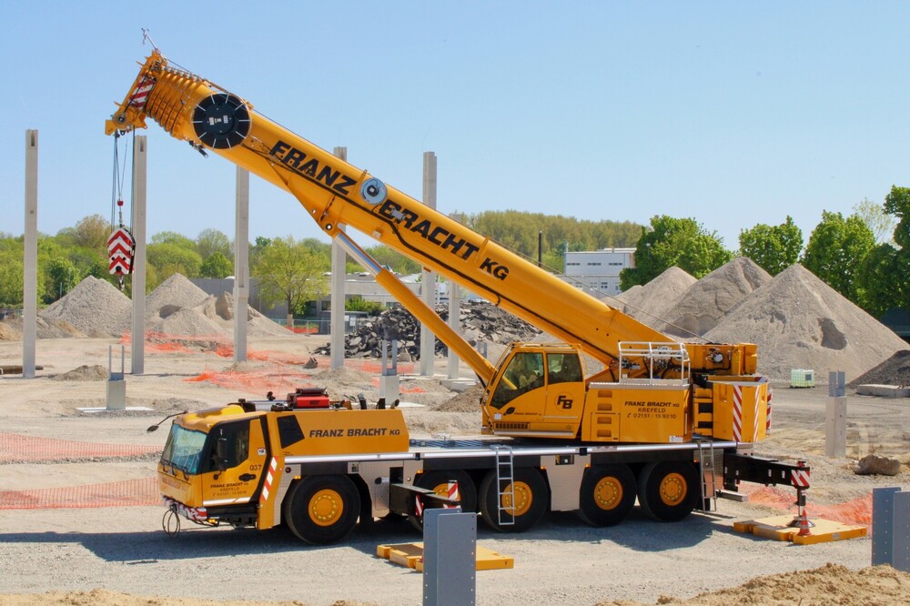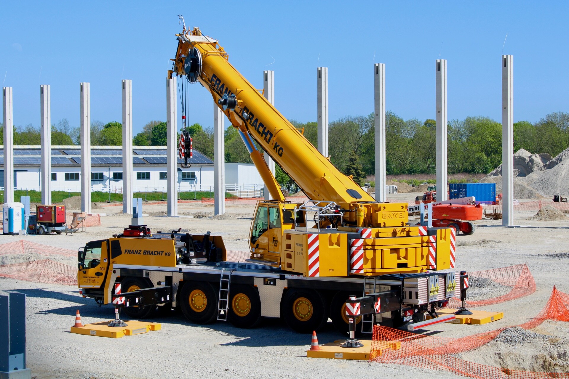 Und wieder was von Bracht. Diesmal einer der neuen Grove Krane mit Ballasttransporter auf einer Baustelle in MG,
