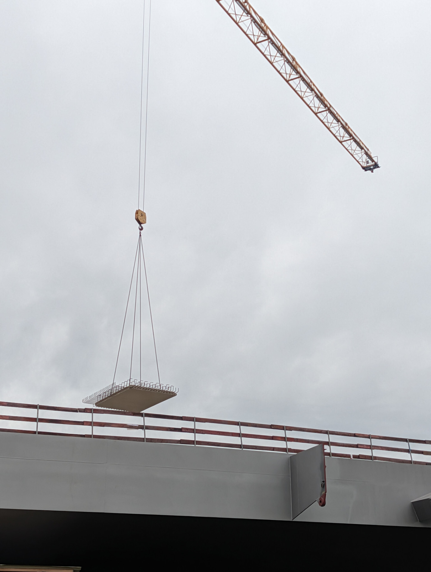 Auf Neunkamper Seite hat auch ein Verschub statt gefunden und die ersten Betonplatten werden auf der Brücke verlegt