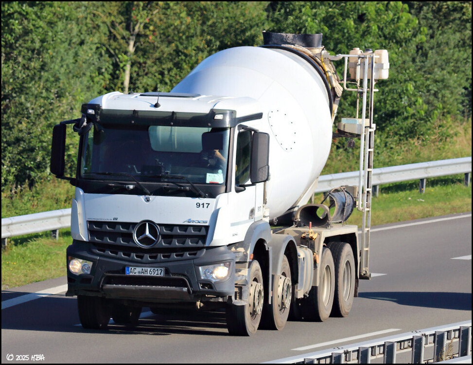 Mercedes Arocs mit Schwing-Stetter Aufbau auf der A31.