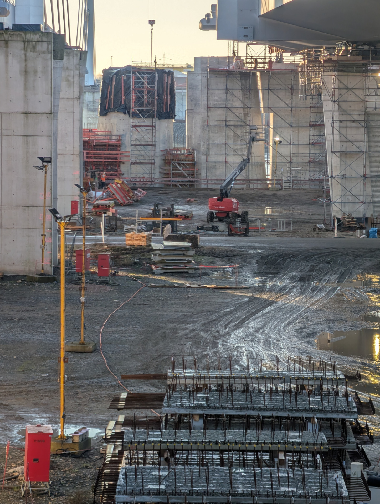 Update von dieser Woche: Der Fundamentabbruch schreitet voran, das Material wird jetzt aber direkt verladen und nichtmehr vor Ort per Brecher zerkleinert. -