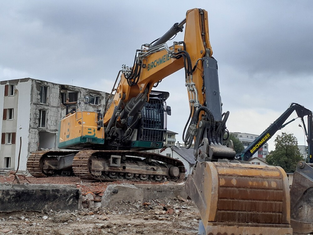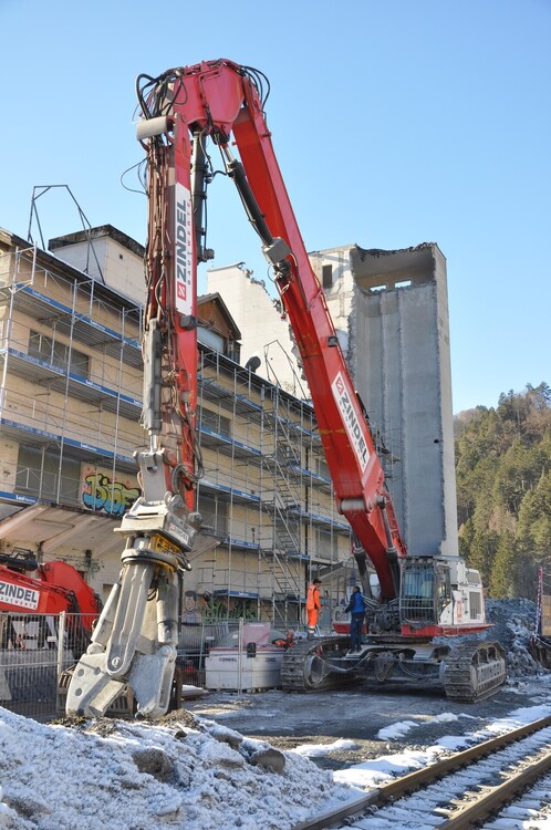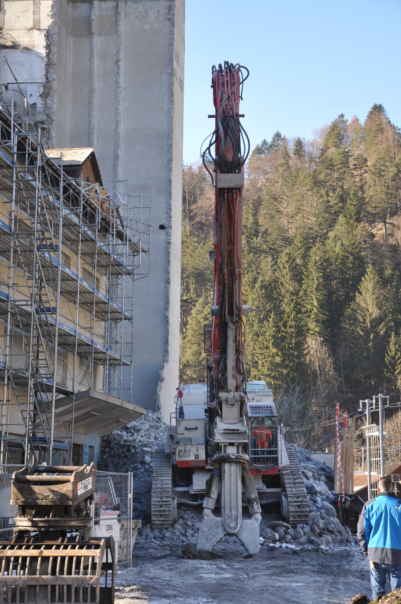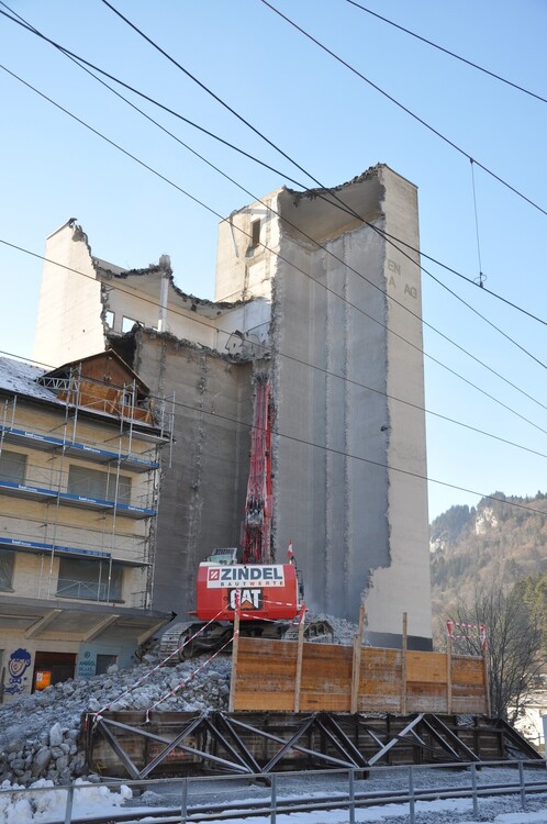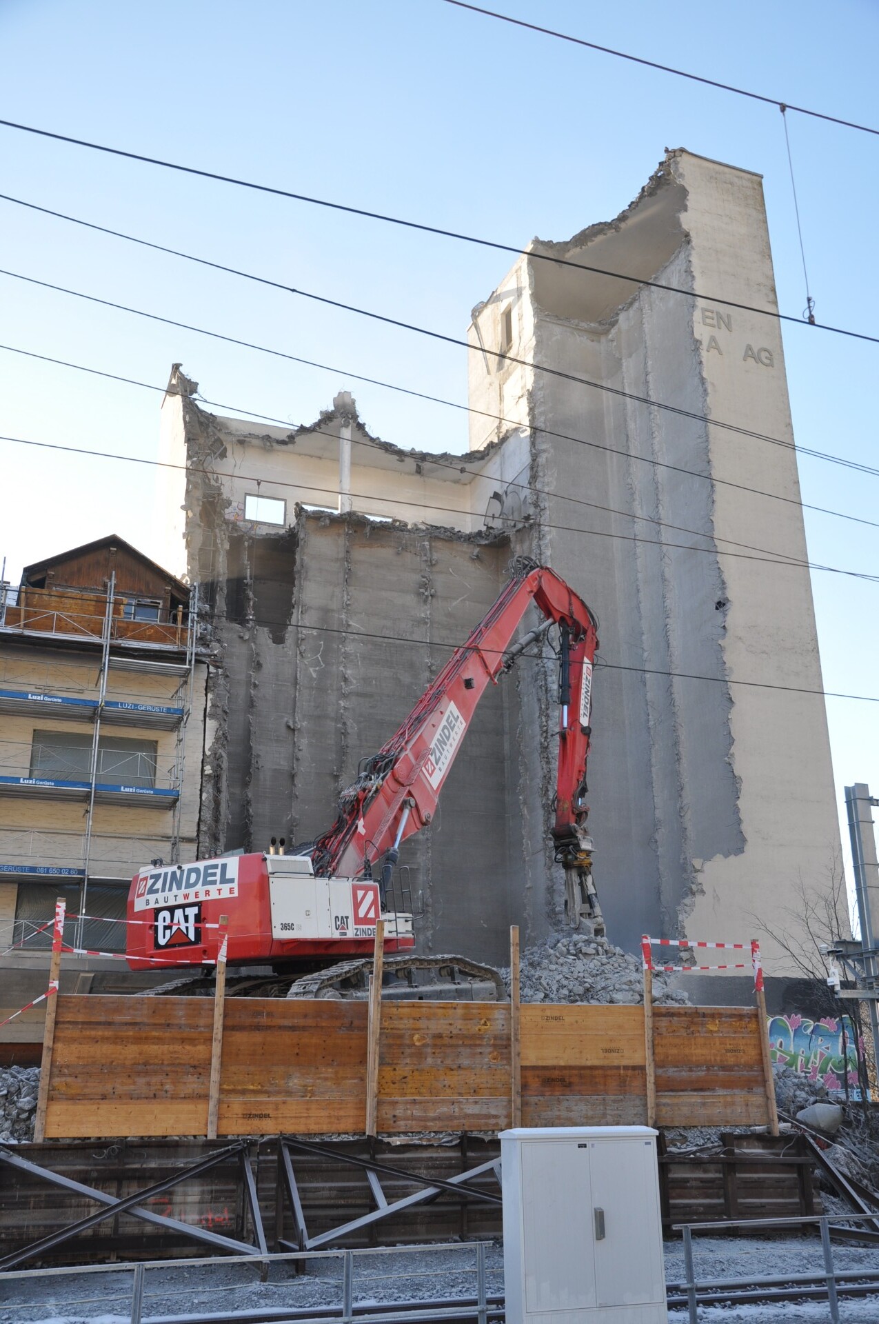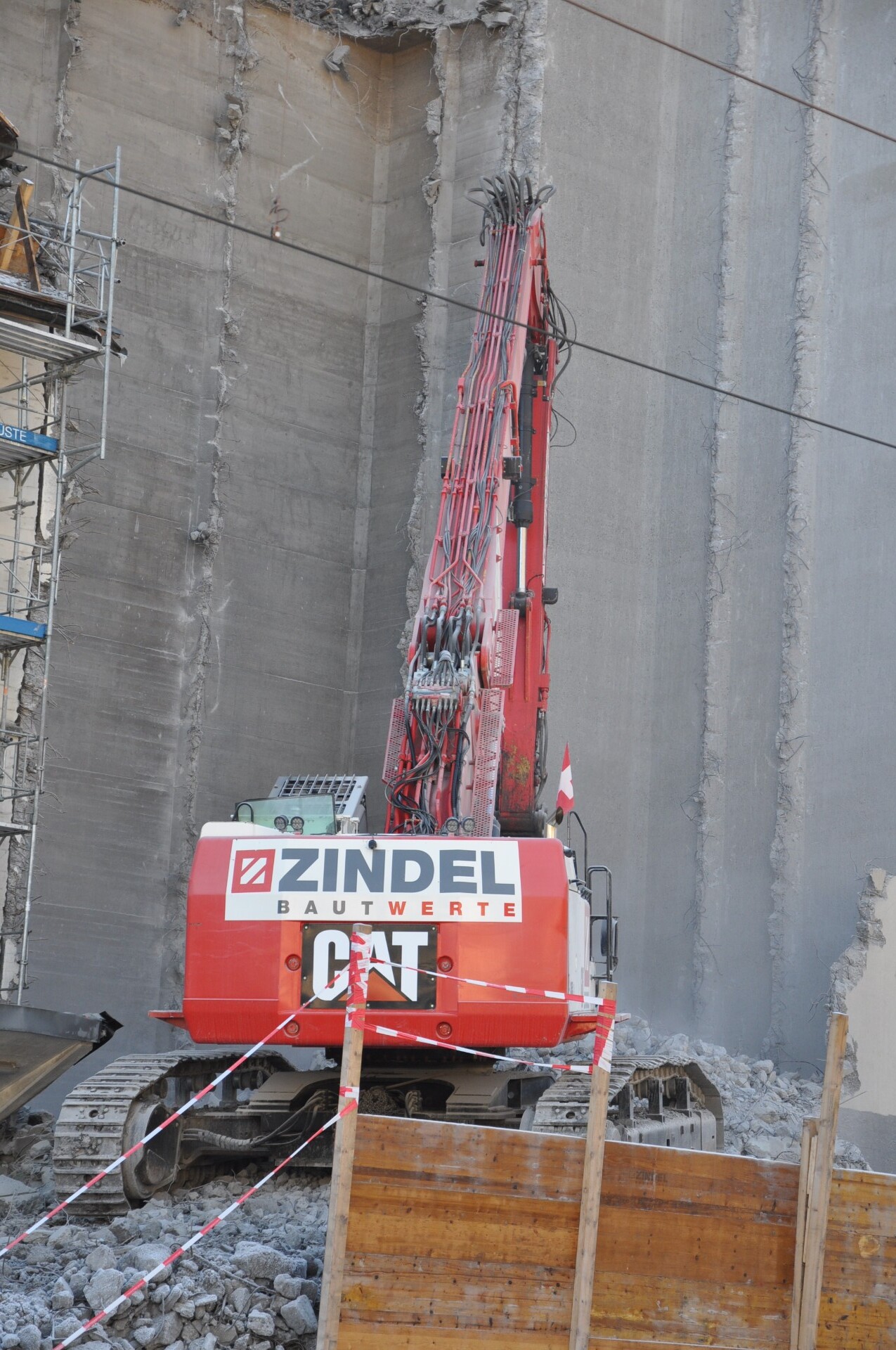 Hallo zämä CAT 365 C ES UHD auf seiner letzten grossen Baustelle. Abgebrochen wurden nur die Getreidesilos, der Rest der Gebäude musste stehen bleiben.