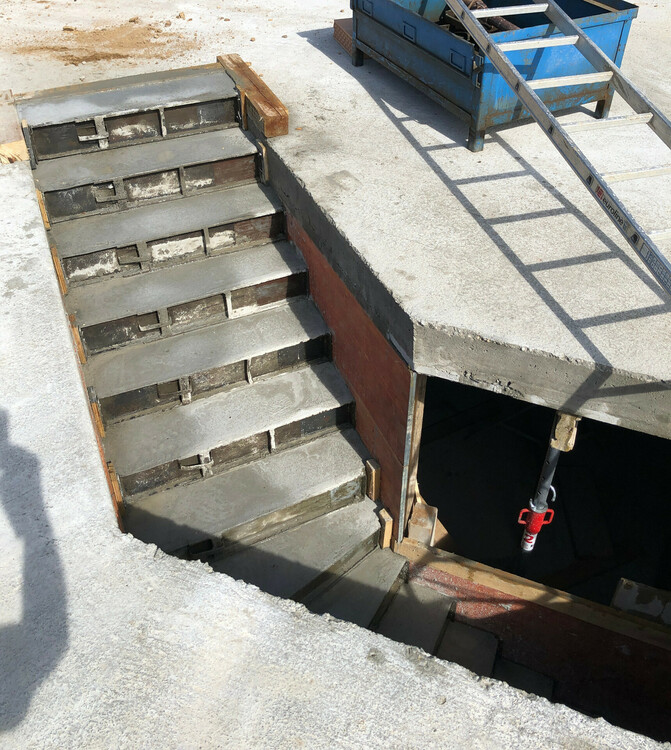 daSchizo 0 Geschrieben 25. Juni Geschrieben 25. Juni Hallo zusammen, Der Titel klingt erstmal nach einer einfachen Sache. In meinem Fall ist die Treppe 5m breit. Erst 1.5m breit sieben Stufen dann kommt ein 2m breiter Bereich der als Sitzbereich gemauert ist und dann wiederum 1.5m genau wie die ersten 1.5m. Dadurch das unterschiedlich hohe Bereiche entstanden sind befürchte ich das der Beton beim befüllen der höheren Stufen der Beton aus den niedrigeren Stufen heraus drückt. Ich habe ein Bild angehängt um besser zu verstehen was gemeint ist. Drückt der Beton der bei den blauen Pfeilen eingefüllt wird den Beton bei den roten Pfeilen raus? Noch eine Frage. An einige Stellen bilden sich Lücken zwischen den Steinreihen weil entweder die Steine nicht so maßhaltig sind oder weil ich "unsauber" gearbeitet habe. Ab welcher Lückengröße sollte ich abdichten? Ich rede in den meisten Fällen von 2-3mm. Danke schonmal im voraus und Gruß Manfred Zitieren