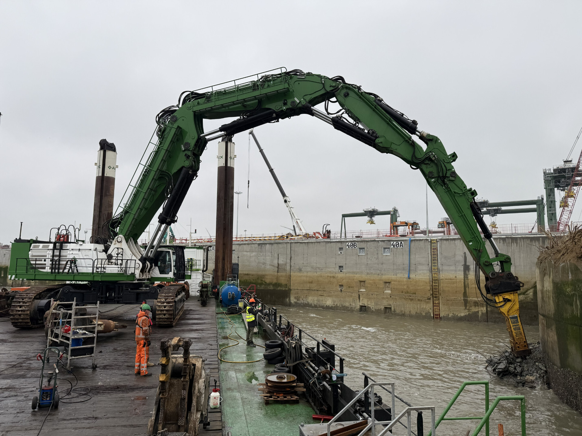 Bauforum24 1.491 Geschrieben vor 1 Stunde Geschrieben vor 1 Stunde Antwerpen (Belgien) - Am Europa-Terminal in Antwerpen entsteht derzeit eines der ambitioniertesten wasserbaulichen Projekte Europas: der Bau einer neuen Kaimauer. Ebenso komplex ist der Rückbau der bestehenden Struktur – eine Aufgabe, die dem niederländischen Unternehmen Adex Groep aus Harderwijk übertragen wurde. Zur Bewältigung dieser Herausforderung entwickelte Adex Groep eine spezielle Lösung: einen selbstnivellierenden Ponton, ausgerüstet mit einem 320‑Tonnen-Abbruchkran, der treffend den Namen Genius trägt. Bauforum24 Artikel (27.10.2025): Epiroc InSite™ - Telematiklösung Epiroc treibt präzisen Rückbau unter Wasser am Antwerpener Europa-Terminal voran Hier geht's zum vollständigen Beitrag Zitieren
