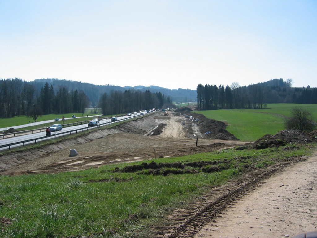 Pedro 0 Geschrieben 9. April 2007 Geschrieben 9. April 2007 Hallo,beim nächsten BA bei Memmingen, der von der ARGE Rädlinger/Kutter durchgeführt wird, herrscht momentan noch Ruhe,weiter südlich zwischen Leutkirch und Wangen arbeitet die ARGE Leitenmaier/Lutzenberger schon an einem neuen Abschnitt der A 96: Zitieren