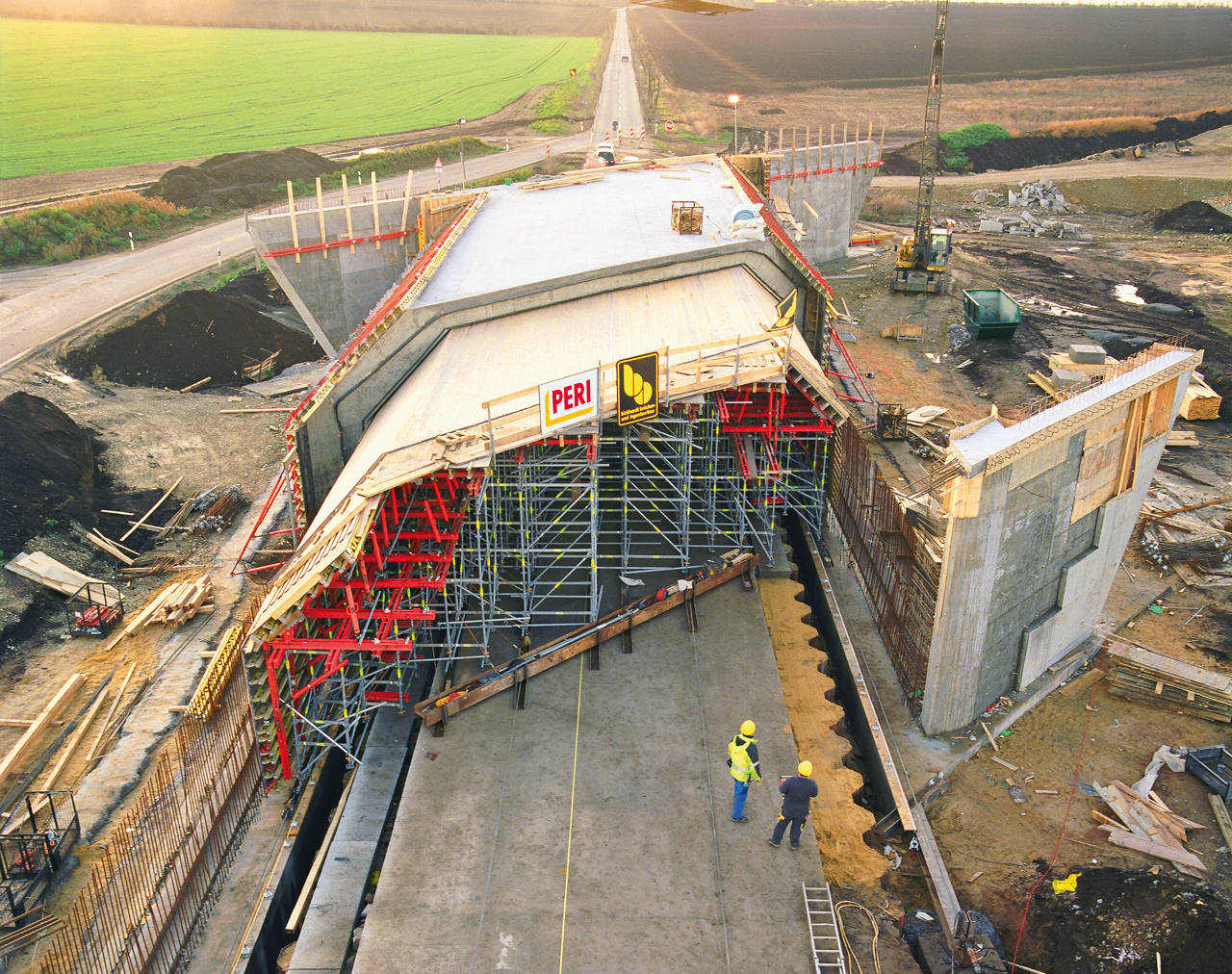 Form 8A 258 Geschrieben 30. Januar 2006 Geschrieben 30. Januar 2006 Von besonderem Vorteil für die Baustelle war, dass ausschließlich mietfähiges Schalungsmaterial eingesetzt und somit der Kostenaufwand minimiert werden konnte.Kein Wunder, entstammen doch die Schalungsteile dem PERI Baukasten für Brückenbauwerke. Dies sind alles serienmäßige Teile. Aufgrund der großen Flexibilität des Systems lassen sich mit ihm auch komplexe Querschnitte zeitsparend schalen. Zitieren