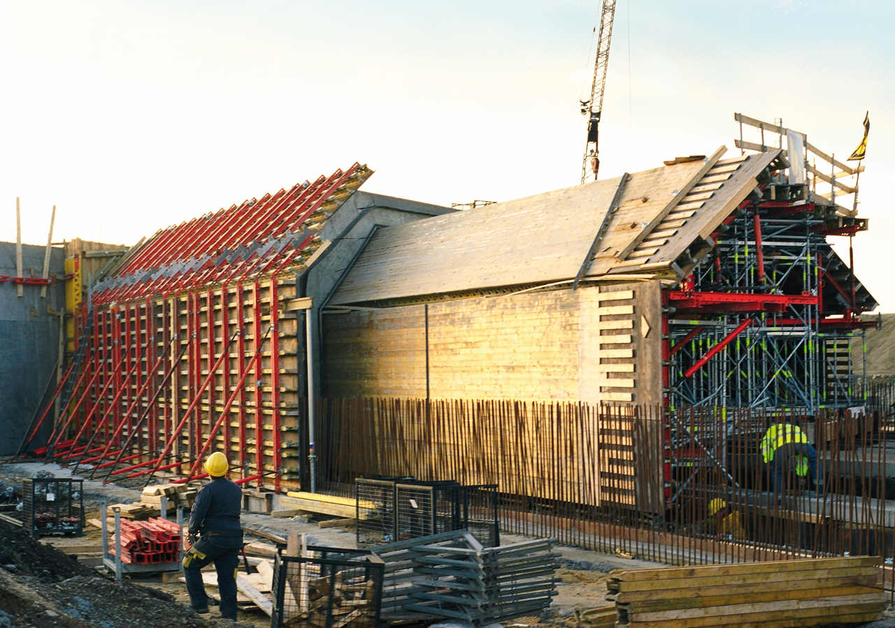 Bauforum24 1.482 Geschrieben 30. Januar 2006 Geschrieben 30. Januar 2006 (bearbeitet) Neubau A 38 Göttingen-Halle, BW 4616/09A, Unterführung Kreisstraße K 2267Wirtschaftliche Tunnelschalungslösung ohne KaufteilePERI bietet Schalung und Traggerüst aus einer HandDie derzeit im Bau befindliche Bundesautobahn A 38 verbindet die beiden Wirtschaftsräume Halle/Leipzig im Osten und Kassel/Göttingen im Westen. Durch die Verknüpfung mit den Autobahnen A 9 und A 14 sorgt die neue A 38 in Verbindung mit der Westumfahrung Halle für eine optimale Anbindung der Region Halle/Merseburg/Leipzig und bildet einen wichtigen Lückenschluss im deutschen Fernstraßennetz. Die Trassenführung des 16 Kilometer langen Ausbauabschnitts zwischen den Anschlussstellen Eisleben und Schafstädt in Sachsen-Anhalt erfordert den Bau mehrerer Brückenbauwerke und Unterführungen. Die tragfähige und verwindungssteife PERI Schalungs- und Gerüsteinheit aus VARIO GT 24 und PERI UP Rosett wurde über hydraulische Seilzüge in den zweiten Betonierabschnitt verzogen. (Foto: PERI GmbH)Zur effektiven Herstellung des Unterführungsbauwerks BW 4616/09A erarbeiteten die Ingenieure des PERI Büros Franken in Bad Kissingen eine wirtschaftliche Lösung, die der ausführenden Bauunternehmung Bickhardt Bau AG, Kirchheim die effiziente Herstellung der Tunnelröhre ermöglichte. PERI lieferte mit Standardelementen des variablen VARIO GT 24 Träger-Wandschalungssystems und PERI UP Rosett als typengeprüftem Traggerüst ein überzeugendes Konzept. Von besonderem Vorteil für die Baustelle war, dass ausschließlich mietfähiges Schalungsmaterial eingesetzt und somit der Kostenaufwand minimiert werden konnte. PERI bot der Baustelle mit Schalung und Traggerüst aus einer Hand eine wirtschaftliche Tunnel-schalungslösung.(Foto: PERI GmbH)In einem Winkel von etwa 45° quert die Kreisstraße K 2267 die auf der gesamten Länge vierstreifig plus Standstreifen angelegte Bundesautobahn mit einer Regelquerschnittsbreite von 29,50 m. Hierzu notwendig waren zwei jeweils 22 Meter lange Tunnelbauwerke mit 13 Meter Querschnittsbreite bei 4,50 Meter lichter Höhe in Fahrbahnmitte. Die Unterführung mit Wand- und Deckenstärken bis zu 1,25 m wurde in offener Bauweise teilmonolithisch betoniert, das heißt die Sohle vorab, anschließend Wände und Decke in einem Guss. Der Tunnelquerschnitt wurde in offener Bauweise teilmonolithisch hergestellt (Sohle vorab, Wände und Decke in einem Guss betoniert). Der Weißenhorner Schalungs- und Gerüsthersteller PERI lieferte der Baustelle hierfür ein überzeugendes Konzept.(Foto: PERI GmbH)Einsatzfertig auf die Baustelle gelieferte, vormontierte VARIO Standardelemente bildeten die Hauptkomponenten der Tunnelschalung. Liegend eingesetzt konnten diese Elemente mit Hilfe von VARIO Kupplungen, Gelenkkupplungen und Riegelgelenken kraftschlüssig miteinander verbunden werden. Schwerlastspindeln in den Eckbereichen sorgten dafür, dass die Innenschalung nach dem Betonieren gelöst werden konnte.Zur Aufnahme der Lasten aus der Wand- und Deckenschalung wurde mit dem Modulgerüstsystem PERI UP Rosett mit nur wenigen Einzelteilen ein räumliches Traggerüst ausgebildet. Durch die Verwendung unterschiedlicher Basisbreiten ließ sich eine wirtschaftliche Tragkraft- und Geometrieanpassung realisieren. Die PERI Lösung ermöglichte es, dass die komplette Innenschalung nach dem Ausschalen auf bauseitigen Stahlschienen mit hydraulischen Seilzügen in den zweiten Abschnitt verzogen werden konnte. Die notwendige Stabilität und Verwindungssteifigkeit der PERI Schalungs- und Gerüsteinheit sorgte dafür, dass der Umsetzvorgang ohne Komplikationen in kürzester Zeit erfolgen konnte. Für die Lasten aus den bis zu 1,25 m starken Wänden und Decken des Tunnelquerschnitts wurde mit VARIO GT 24 und PERI UP Rosett eine wirtschaftliche Tragkraft- und Geometrieanpassung realisiert.(Foto: PERI GmbH)Die hohe Steifigkeit der PERI UP Rosett Riegelanschlüsse erhält die Form des Gerüstes bei Umsetzvorgängen durch Verfahren oder mit dem Kran. So können auch größere Einheiten ohne aufwändige Montagearbeiten verbunden bleiben. Als Traggerüst ist PERI UP Rosett bis 22 m Höhe typengeprüft einsetzbar: Etwa 40 kN pro Stiel können sicher abgeleitet werden. Außerdem bietet PERI UP ein umfangreiches Zubehörprogramm. Damit können beispielsweise Belagebenen für Materialtransporte eingebaut oder Zugangstreppen integriert werden. So wird die Sicherheit erhöht und der Arbeitsablauf beschleunigt. Polier Jens Hagemann und Bauleiter Alen Cagorski von der ausführenden Bauunternehmung Bickhardt Bau AG aus Kirchheim waren von der PERI Lösung überzeugt.(Foto: PERI GmbH) bearbeitet 30. Januar 2006 von Bauforum24 Zitieren