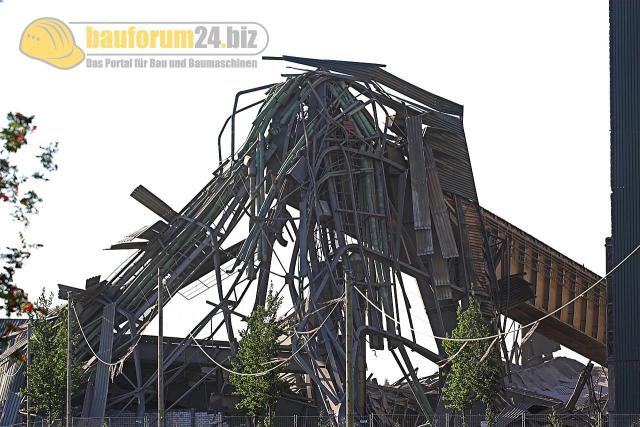 Bauforum24 1.491 Geschrieben 21. August 2006 Autor Geschrieben 21. August 2006 Fa. Heinrich Becker aus Bottrop ist verantwortlich für den Abbruch. Am Vorabend werden zahlreiche "Big-Bags" installiert. Die mit Wasser gefüllten Behälterwerden ebenfalls gesprengt. Die entstehende Wasserwand soll den Staubanfall mindern. Auch im Inneren der Halle sind Big-Bags installiert. Die Fundamente der ehemaligen Gießpfannen. Die Bewehrung massiv, scheinbar für dieEwigkeit gebaut. Hier hätte wohl auch in vielen Jahren noch glühender Stahl fließen können... Zitieren
