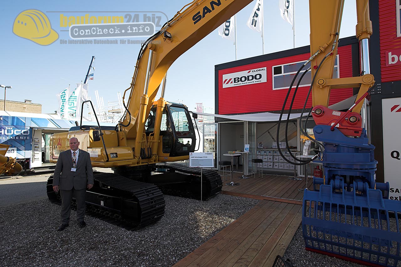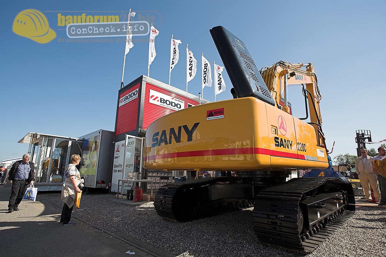 Bauforum24 1.425 Geschrieben 16. September 2006 Autor Geschrieben 16. September 2006 Der chinesische Hersteller SANY hatte auf der diesjährigen Nordbau seine Deutschland Premiere. Mit der Firma BODO Global hat der asiatische Hersteller einen engagierten Importeur und Vertrieb unter Vertrag. Die ausgestellten Maschinen, ein 22t Raupenbagger, ein Grader sowie eine Betonpumpe auf Volvo Fahrgestell wurden denn auch neugierig vom Publikum gemustert. Das noch kaum jemand die Maschinen belächelte mag man als Zeichen deuten. Bodo Gävert, Geschäftsführer der BODO Global, setzt auf u.a ein ausgezeichnetes Preis- / Leistungsverhältnis und eine schnelle und kulante Service-Philosophie. Für den Bauforum24 Nordbau Report erläuterte Gävert die Merkmale des Raupenbaggers SY220. Zitieren