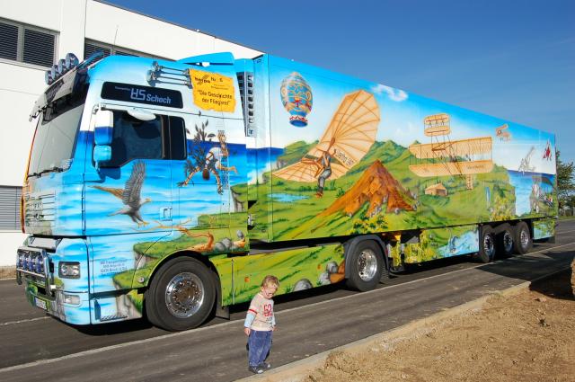 Watermaster01 13 Geschrieben 9. Januar 2007 Geschrieben 9. Januar 2007 Salü User,hier mal wieder ein Schmuckstück für die Augen (auch wenn es ein MAN ist )Herpa lässt auf einer ganzen Reihe von Airbrush LKW's die bei verschiedenen Speditionen eingestellt sind unsere Weltgeschichte in Bildern und Fakten Revue passieren. Dieser Truck trägt die Nummer 6 und stellt die Geschichte der Fliegerei von den Anfängen bis zu unserer Zeit vor. Fotografiert wurde das Schmuckstück in Raum Nürtingen von Udo (Danke für die Bilder) und seinen Sohn.MfGUwePS. Von jedem Fahrzeug stellt Herpa auch ein passendes 1/87 Modell her (limitiert) Zitieren