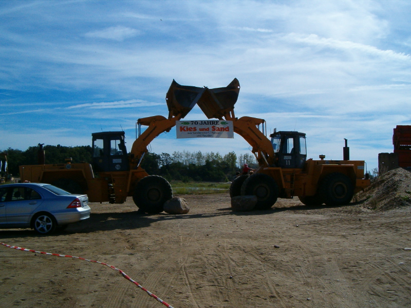Alexander Schwabe 18 Geschrieben 19. September 2004 Geschrieben 19. September 2004 Ich war gestern beim Tag der offenen Tür in der Kiesgrube Sandersdorf, weil es einen Geburtstag gab. Und zwar "70 Jahre Sand und Kies in Sandersdorf, Ramsin und Reuden! Die Firma die der Kiesgrube gehört stelle ihre Fahrzeuge aus, das Radio war da sowie Regional Fernsehen, Festzelt und für das leibliche Wohl war auch gesorgt! Aber die Hauptattraktion war, wer wollte mit einen Volvo Lader zufahren so ich gesehen hab gibt es 6 Volvo Lader in der Grube (mehrere L150E und L180E) und mit allen 6 konnte man fahren Was ich auch tat Zitieren