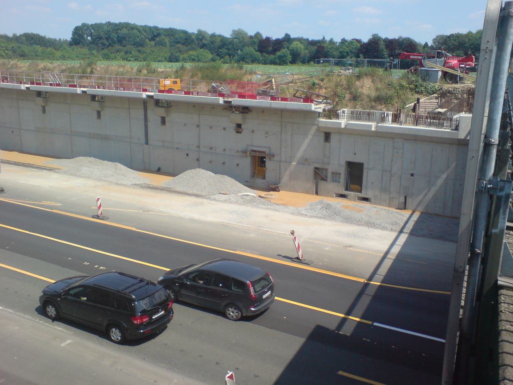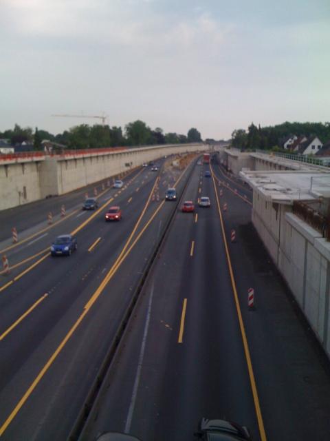 pommesschranke 0 Geschrieben 27. Juni 2010 Geschrieben 27. Juni 2010 Wie die Herren Fotografen der BAB 40 in Bochum war auch ich ne Runde mitm Radl unterwegs. Diesmal in entgegengesetzter Richtung, also Fotos von Norden nach Süden.Die Unterführung ist wieder frei. Sieht eher aus wie der Zugang zu einem Luftschutzbunker Hier kommen dann wohl aber noch Lärmschutzelemente hin. Überblick über die Unterführungsbaustelle. Da steht noch ne Walze einsam zwischen den Fahrspuren. Zitieren