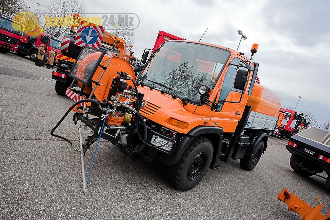 Im BIC wird auch der Unimog mit verschiedenen Anbaugeräten und Aufbauvarianten präsentiert: