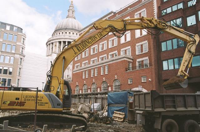 Bauforum24 1.483 Geschrieben 11. Juni 2007 Geschrieben 11. Juni 2007 Das Grange St Paul's Hotel, das zurzeit in der Nähe der Kathedrale St. Paul gebaut wird, wird nach seiner Fertigstellung das neueste 5-Sterne-Hotel Londons sein. Wie so viele Projekte in der Londoner Innenstadt, waren die Bauarbeiten nicht ganz unproblematisch. Der Bauunternehmer für die Aushubarbeiten und die Betonrahmenkonstruktion ist die Firma J. Reddington Ltd, die mit den Architekten Buchanan Associates Architects Ltd zusammengearbeitet hat. Damian Horan, der im Bauunternehmen verantwortliche technische Projektleiter berichtete, dass abgesehen von den üblichen Problemen bei Arbeiten auf engem Raum, mit Bürogebäuden auf allen vier Seiten, die schwierigste Herausforderung darin bestand, die Logistik der Anlieferungen an die Baustelle zu planen, da diese nur über eine enge Sackgasse angefahren werden kann. Ein weiteres Problem bestand darin, auf der nur 2.000 m² großen Fläche, die für den dreigeschossigen Keller auf eine Tiefe von 14 m ausgehoben werden musste, mit möglichst wenig Gerät auszukommen. Zur Lösung dieses Problems brachte man einen New Holland E215 LC ME Hydraulikbagger auf die Baustelle, d.h. einen Standardbagger, der sich problemlos umbauen lässt, so dass er mit einem zusätzlichen dritten Auslegerelement eine außergewöhnlich große Reichweite bis zu einer Tiefe von über 15 m bieten kann. Ein New Holland E215 LC ME mit drittem Auslegerelement Auch auf enger Baustelle kaum Probleme beim VerladenDamit war das Ausheben der Fundamente am Schluss eine relativ einfache Aufgabe. Der Bagger erreichte nicht nur den Boden der Baugrube, sondern konnte auch beim Verladen den Ausleger eng an die Maschine einklappen, so dass Lastwagen beladen werden konnten, die nahe an der Maschine und entfernt von dem nahe liegenden Bürogebäude standen. Der E215 LC ME ist außerdem eine ziemlich leise Maschine, die damit dem Bauunternehmer hilft, die Lärmemissionen auf ein Mindestmaß zu beschränken. Hier die Eindrücke des Baggerfahrers: ?Die außergewöhnliche gute Sicht auf den Löffel auch bei voller Reichweite, beim gesamten Schwenken und in den Lastwagen macht die Arbeit sehr viel leichter als gedacht. Die Steuerung reagiert außerdem ziemlich direkt, so dass die Beladung des Löffels, das Anheben und das Schwenken sehr viel schneller verlaufen." Ein 4.870 kg schwerer New Holland Bagger E50.2SR unten in der Baugrube unterstützte die Arbeit, indem er die Erde aufschüttete, so dass der E215LC das Aushubmaterial nur noch entnehmen musste. Zur Unterstützung war ein E50.2SR von New Holland in der BaugrubeVor seiner Konfiguration für die abschließenden Aushubarbeiten wurde der E215LC als 23 Tonnen schwerer Standardbagger in der Baugrube verwendet, zusammen mit dem E50.2SR, der ohne Hecküberhang in unmittelbarer Nähe der Wände der Baugrube arbeiten konnte. In den Anfangsphasen der Aushubarbeiten zeigte sich, von welchem Wert die Konfiguration mit der großen Reichweite war, denn es war nicht möglich, den Bagger näher an den Arbeitsbereich heranzubringen. Die Erdbewegungsarbeiten begannen im Mai 2006 und werden voraussichtlich im Juli 2007 abgeschlossen sein. Die Arbeit an den Kellergeschossen und an den acht oberirdischen Geschossen hat bereits begonnen. Das 75 Millionen Britische Pfund schwere Projekt wird von Grange Hotels betrieben, einem Unternehmen mit diversen Luxushotels im gesamten Innenstadtgebiet von London. Das Hotel, das im August 2008 eröffnet werden soll, wird 435 Hotelzimmer, ein Konferenzzentrum, Restaurants, Bars und ein Fitnesszentrum beherbergen. (Fotos: CNH) Zitieren