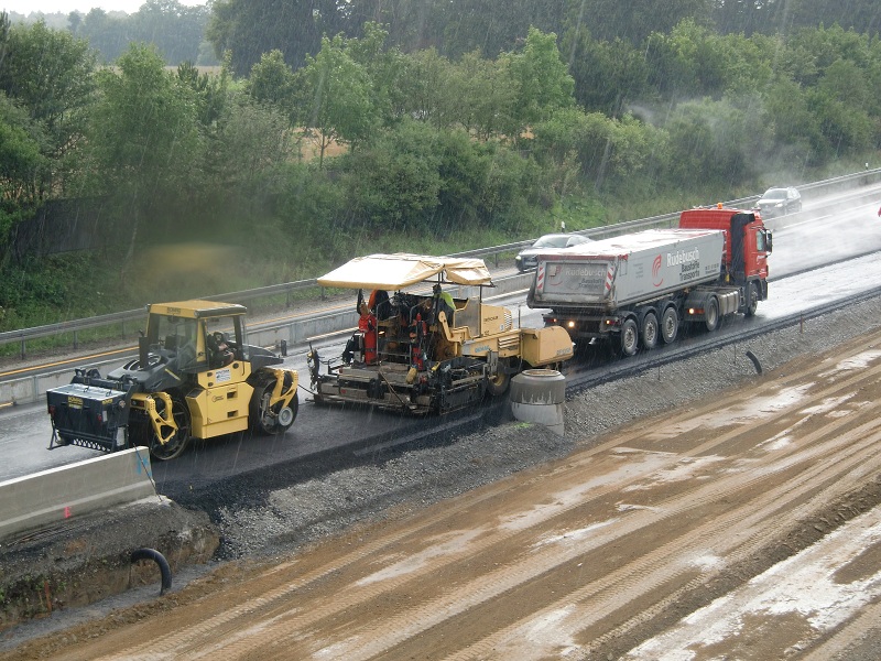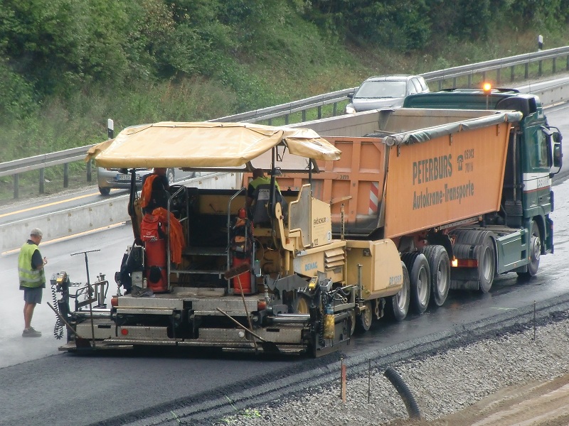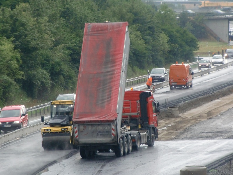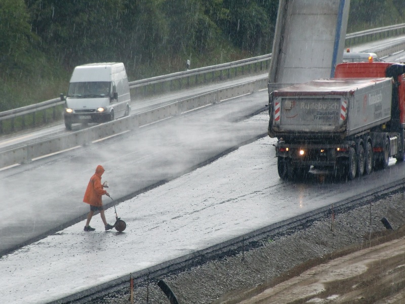 Maxi 3341 5 Geschrieben 29. Juli 2010 Geschrieben 29. Juli 2010 (bearbeitet) Warten auf den nächsten Sattel. Schnell noch aufmessen, da kommt auch schon der nächste Sattel von Rudebusch Baustoff Transporte Rückwärts zum Fertiger gefahren. Bei Strömenden Regen in kurzer Hose. Walze am Fertiger. bearbeitet 29. Juli 2010 von Alpha Maxi Zitieren