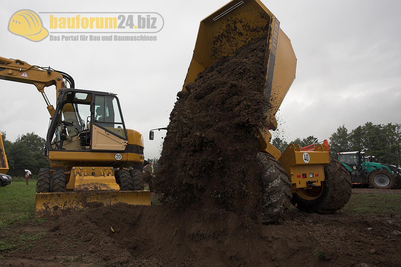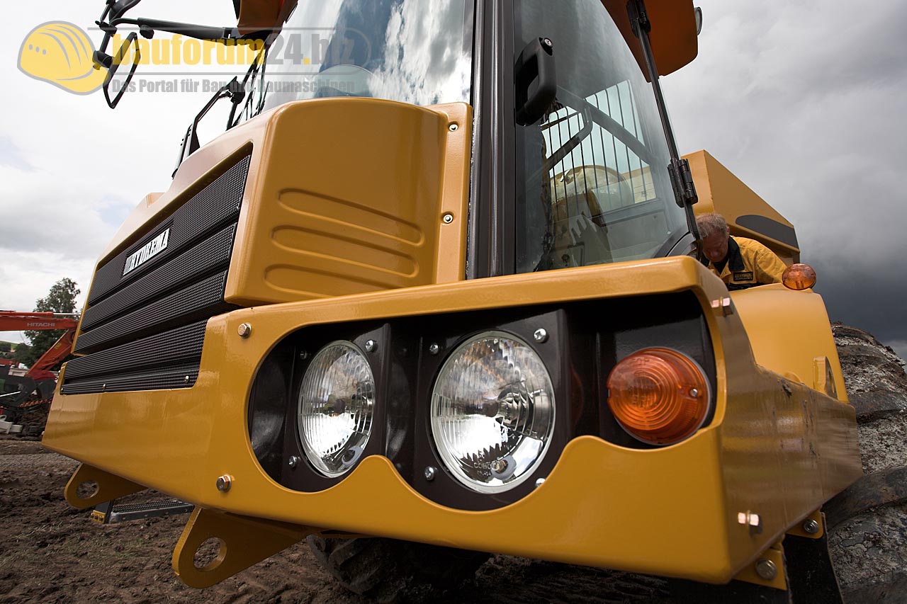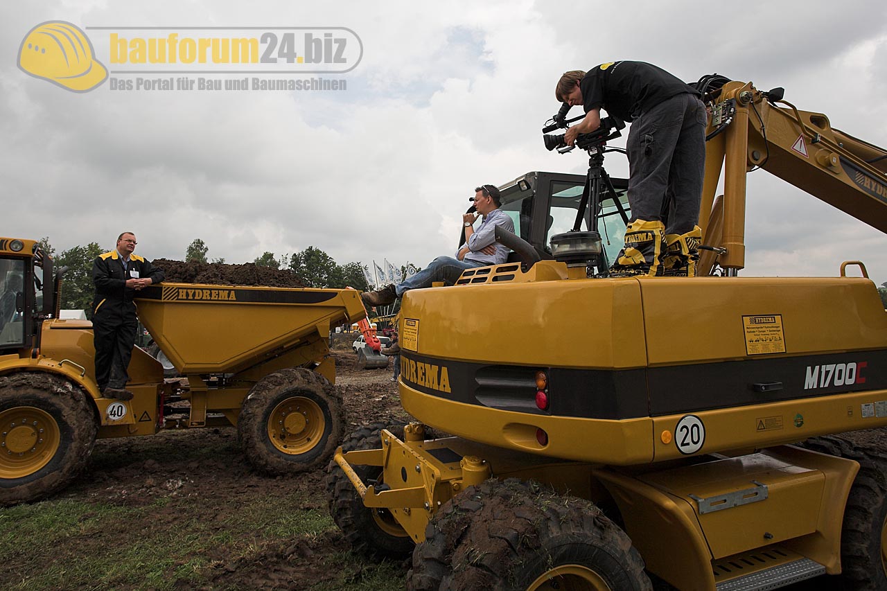 Bauforum24 1.425 Geschrieben 26. Juni 2007 Autor Geschrieben 26. Juni 2007 HydremaHighlight bei Hydrema war der überarbeitete knickgelenkte Muldenkipper 912 der D-Serie, der durch gute Geländegängigkeit - die nach drei Regentagen auch wirklich benötigt wurde - und eine komfortable Kabine überzeugte. Durch die MultiTipfunktion lässt sich die Mulde stufenlos bis zu 180° schwenken. Hydrema M 1700 C im Ladespiel mit 912 D Die Mulde des 912 D ist bis zu 180° schwenkbar und ermöglicht so z.B. das einfache Verfüllen von Gräben. Hydrema 912 D Verkaufskoordinator Henning Andersen von Hydrema im Gespräch mit Bauforum24 TV Zitieren