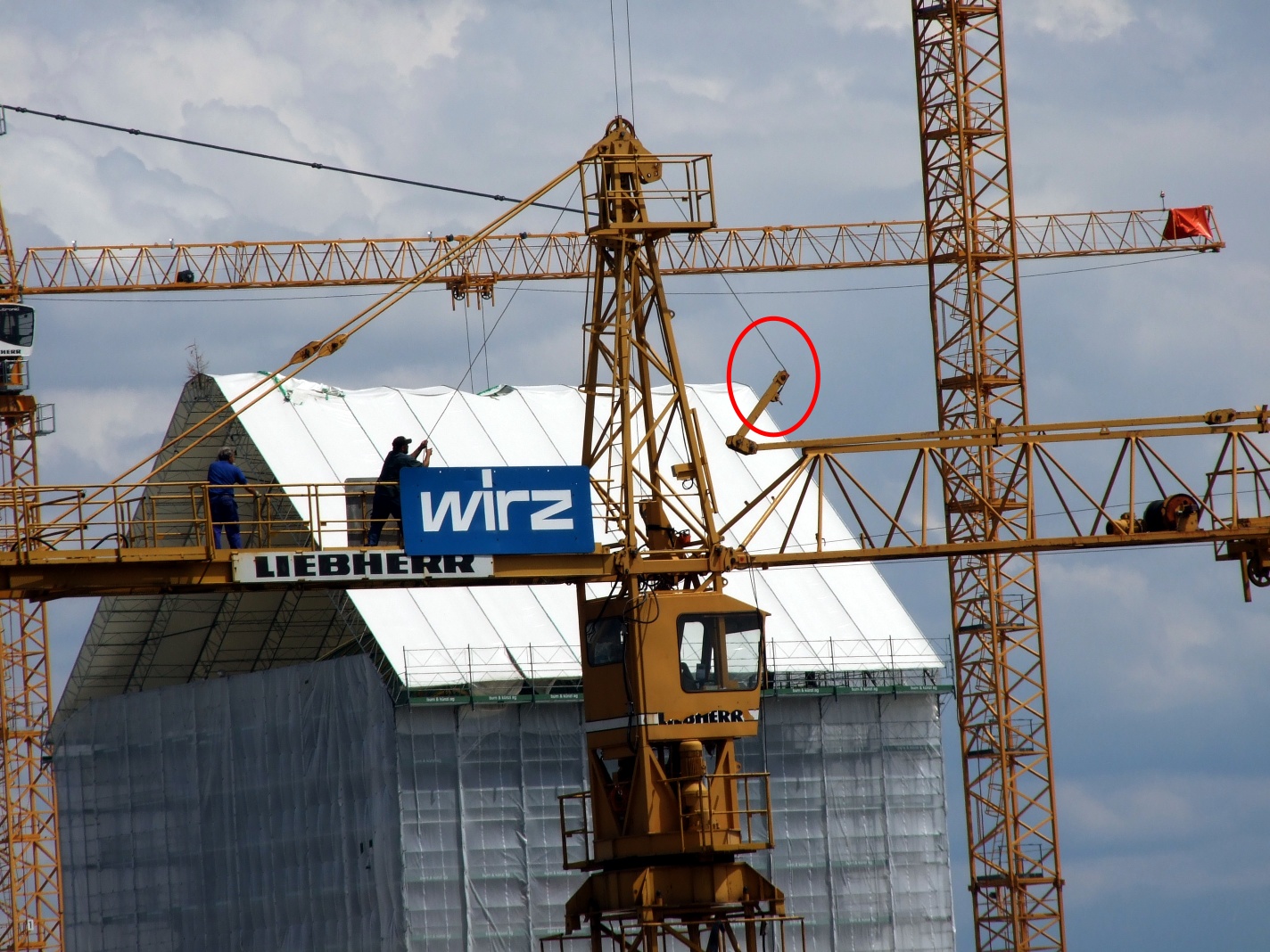 Gast Beat Geschrieben 1. Juli 2007 Geschrieben 1. Juli 2007 Bei diesen beiden Bildern kann man sehr gut erkennen wie die Abspannstange nach oben gezogen wird, zur Kranspitze.Im roten Kreis sieht man wo das Seil vom Habegger an der Abspannstange angebracht wird, und mit Handarbeit nach oben gezogen wird. Den Habegger betätig der Mann im grünen Kreis. Die roten Pfeile zeigen das Seil vom Habegger. Zitieren
