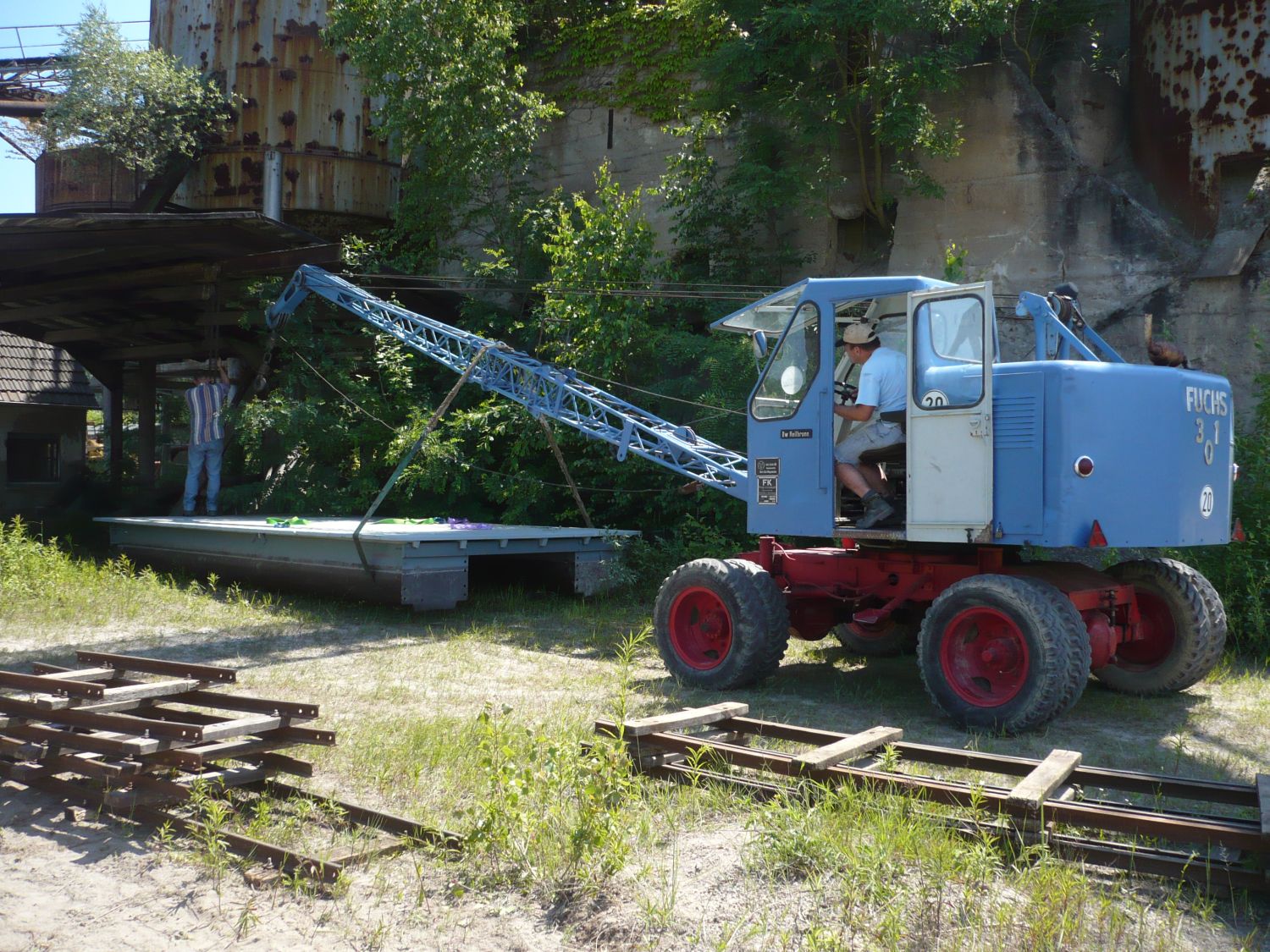 Stefan 241 Geschrieben 18. Juni 2009 Autor Geschrieben 18. Juni 2009 Hallo Schupp, am vergangenen Wochenende haben wir bereits Vorbereitungsmaßnahmen durchgeführt. Dazu wurden die Sandhügel wieder aufgeschüttet, die Feldbahn vorbereitet (ja, sie kommt wieder) und einen Ponton für betriebliche Zwecke des Kieswerks zu Wasser gelassen (auch das gibt es, offiziell ist das Kieswerk nicht stillgelegt, zur Zeit wird lediglich kein Kiesabbau betrieben). Nachfolgend ein paar Bilder: Der Ponton musste aus dem Unterstand, wo er hergestellt wurde, ausgefahren werden. Schwere Lasten sollte man über die starre Achse bewegen - sonst hebt der Fuchs das Bein Umgedreht und vollgetankt geht das Ganze Mit so einer Last wird selbst das Kieswerk zu schwierigem Geländer. Bei der Neigung ist die Gefahr, daß der Ausleger nach hinten überschlägt groß. Also geht's in Zeitlupe vorwärts. Die Bauüberwachung ist kritisch Kurz vorm zu Wasser lassen Geschafft - nun kann der Ponton verwendet werden. Für alle möglichen Arten von Untersuchungen... (Wasserproben, Wassertiefen usw.) Die Bauüberwachung ist zufrieden Der Hund hat doch glatt die Raupe stillgelegt. Zum Feierabendbier gibt's Gulaschsuppe Zur Frage der Maschinen: Viele Teilnehmer sind Stammgäste und halten deshalb eine Anmeldung nicht mehr für notwendig. Das macht es uns schwer, die Sache zu planen. Von Seiten des Vereins und seiner Mitglieder sollen die folgenden Maschinen kommen: - Fuchs 301 mit Gittermast und Greifer- Fuchs 500 mit Gittermast und Greifer- Dolberg 200 mit Tieflöffel- Dolberg 451 mit Tieflöffel- Menck M40 mit Gittermast und Greifer- Menck M60 mit Gittermast und Greifer- Gross UB 475 mit Gittermast und Greifer- Hanomag K8- Hanomag B8außerdem die Feldbahn und natürlich viele, viele Lkw. Nun noch ein Hinweis in eigener Sache: Das Kieswerk ist Privatgelände und wird scharf überwacht! Fotofuzzies, welche jetzt schon Bilder machen wollen begehen Einbruch und Hausfriedensbruch! Um das gute Verhältnis zum Kieswerksbesitzer und damit den Fortbestand der historischen Baustelle zu wahren werden wir jedes unberechtigte Eindringen verfolgen! Zitieren