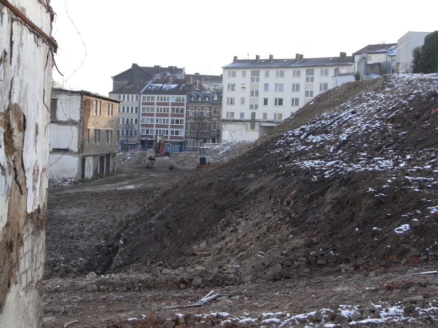 tomac 11.324 Geschrieben 28. November 2010 Geschrieben 28. November 2010 Hier sieht man sehr gut, wie groß der Hähenunterschied auf dem Gelände ist. Rechts bleiben einige Gebäude stehen, so dass hier für die Baugrube eine Bohrpfahlwand erstellt werden muss. Deshalb wurde der Bauschutt auch nicht abgefahen sondern zu einer breiten Rampe für die Bohrgeräte aufgeschüttet. Zitieren