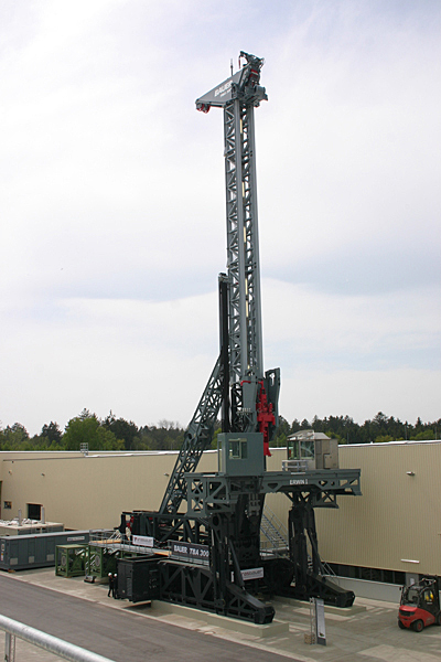 Bauforum24 1.491 Geschrieben 4. Mai 2009 Geschrieben 4. Mai 2009 Premierenstimmung herrscht derzeit bei Bauer. Mit der Tiefbohranlage TBA 300 hat die Bauer Maschinen GmbH neue Dimensionen in ihrer Gerätestrategie in Angriff genommen. Für die Anlage sieht man einen Markt in vielen Bereichen der Welt; das Gerät kann für Tiefengeothermie, auch zur Öl- und Gas-Exploration und für Produktionsbohrungen eingesetzt werden. In Regie der Bauer Resources GmbH wird die Anlage, die im Endausbau Bohrungen bis über 4000 Meter Tiefe ausführen kann, bei eigenen Projekten oder im Auftrag anderer Firmen betrieben. Mit 41 Meter Höhe überragt die vor wenigen Tagen aufgestellte TBA 300 wie ein kleiner Kirchturm die neuen Bauer-Werkhallen in Edelshausen. Beim ersten Schrobenhausener Tiefbohrtag wurde die Anlage gestern einem internationalen Publikum vorgestellt, 120 Gäste aus zehn Ländern waren gekommen. Unter Leitung von Stefan Schwank, der für den Vertrieb der Tiefbohranlage zuständig ist, wurde das Thema Tiefengeothermie erst in der Theorie vertieft, dabei stellte Projektleiter Roland Wenger die Konzeption des Bauer-Geräts vor.In die neue Tiefbohranlage konnten die Konstrukteure ihre ganze Erfahrung aus 40 Jahren Bauer-Maschinenbau einbringen. Die Bauer TBA ist eine elektro-hydraulische Bohranlage mit 300 Tonnen Hakenlast. Besondere Energieeffizienz ergibt sich durch einen Hybridvorschub, der bis zu 30 Prozent Energiereinsparung ermöglicht. Mit ihrer modularen Bauweise und ihren Hydraulikkomponenten verfügt die TBA über eine Kinematik, die ein schnelles Auf- und Abbauen ermöglichen und auch das Umsetzen der großen Anlage von einem Bohrpunkt zum nächsten erleichtern soll. In Schrobenhausen wird Bauer die Energie der Tiefengeothermie für die Heizung von Werkhallen nutzen. Den Gästen des Tiefbohrtages konnte der erste Teil des Projekts vorgestellt werden, und zwar befindet sich am Bohrpunkt derzeit ein Prakla-Bohrgerät RB 50, das für den oberen Teil der Bohrung eingesetzt wird, eine "Ankerrohr-Tour" bis in 450 Meter Tiefe. Erst dann ? ungefähr Mitte August ? wird die Tiefbohranlage den Platz über dieser Bohrung einnehmen und dann die 2500 Meter-Marke unter Gelände ansteuern. Mehr Bauforum24 News... Fotostrecke: Bauer auf der bauma China 2008(Fotos: Bauer) Zitieren