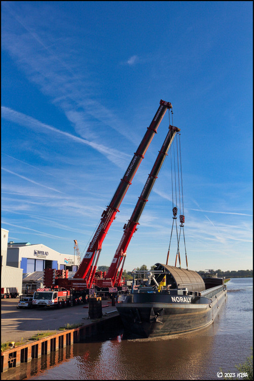 HBA 15.130 Geschrieben 23. Dezember 2023 Geschrieben 23. Dezember 2023 Tandemhub eines Stahlbauteils auf ein Binnenschiff im Papenburger Nordhafen durch die Firma Wagenborg Nedlift: 6 Zitieren