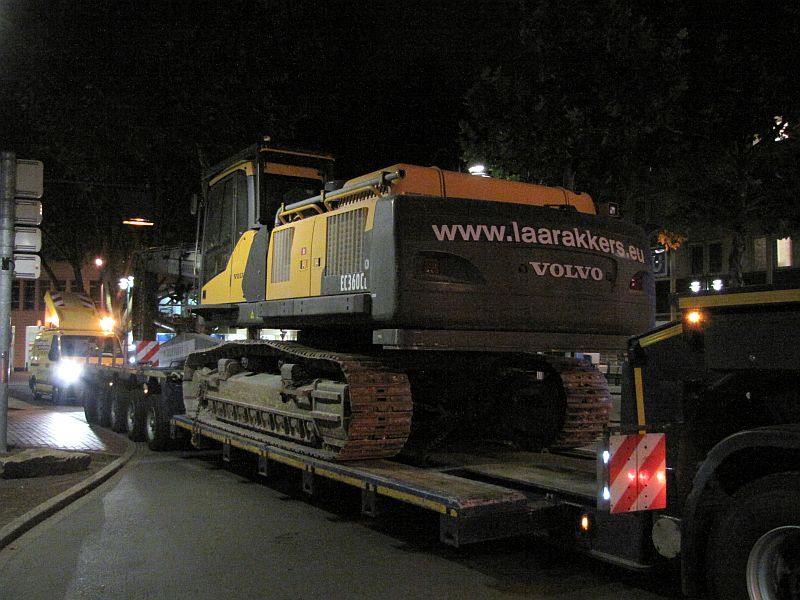 Blecki 4.133 Geschrieben 13. August 2010 Geschrieben 13. August 2010 So langsam kommt Schwung in den Abbruch, heute Nacht kam der Volvo EC360CL von Laarakkers an der Baustelle an. Dann ging es rückwärts in die Untermauerstraße bis zum Baustellenbereich. Schnell die Ladungssicherungen entfernen und abladen. Und schnell zurück in die Heimat. Zitieren