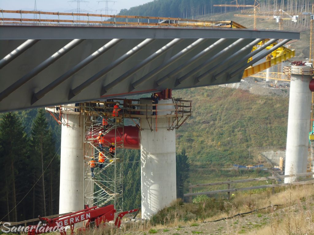 Utopia1984 38 Geschrieben 9. Oktober 2012 Geschrieben 9. Oktober 2012 Hallo Leute, leider hatte ich die Tage nicht die Kamera dabei, aber die Firma Bögl hat den großen Kran auf der Sengenbergseite erhöht. Und ist nun dabei den auf der Suhrenbergseite auf Endhöhe zu bringen.Des weitern sah es so aus als ob Sie wider einen Vorschub gemacht haben.dazu habe ich heute von meiner Baustelle aus gesehen das jetzt wohl an der Brücke zu Föckinghausen gesprengt wird. Die sind ja dabei diese Brücke von Velmede nach Föckinghausen anzuschließen.MFG Zitieren