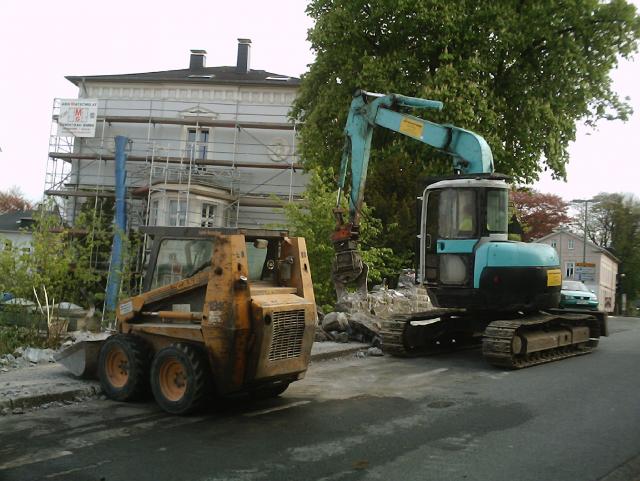 o.p.b 61 Geschrieben 5. Mai 2010 Autor Geschrieben 5. Mai 2010 Die Baustelle neigt sich dem Ende zu.An der Hasleystr. wird noch die Bruchsteinmauer abgebrochen. Beteiligte Maschinen: Minibagger KOBELCO SK75UR mit Zange und zum Verladen ein Kompaktlader CASE 1840 UNI LOADER. Zitieren