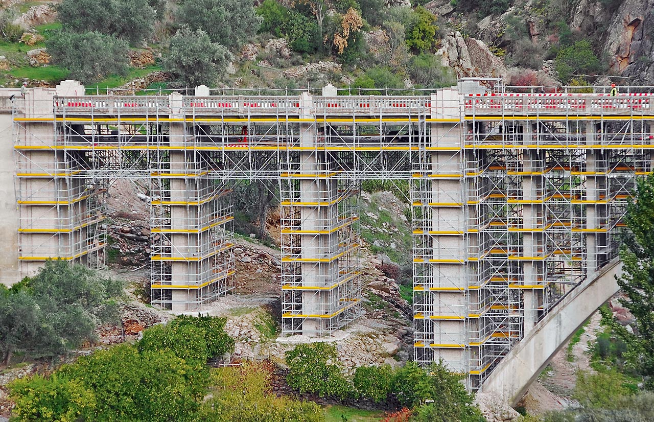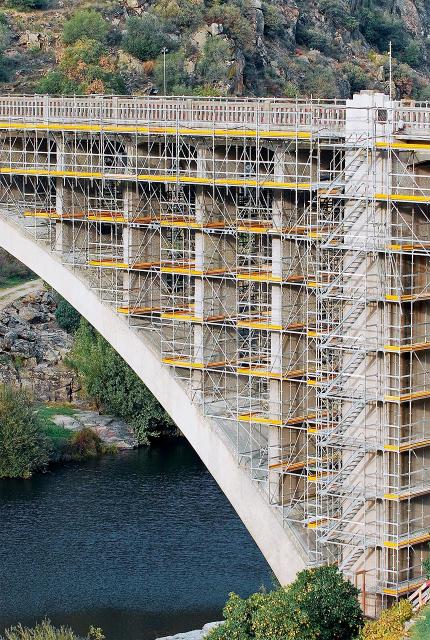 Bauforum24 1.491 Geschrieben 7. Januar 2010 Geschrieben 7. Januar 2010 Eine Stahlbeton-Bogenbrücke aus dem Jahr 1940, die den Rio Tua in der portugiesischen Provinz Trás dos Montes überquert, wird derzeit umfassend saniert. Zugänge und Arbeitsplattformen für die Instandsetzung bietet eine Gerüstkonstruktion auf Basis des Gerüstsystems Peri Up Rosett Flex. Die modulare Bauweise des Gerüsts erlaube eine optimale Anpassung an die Brückengeometrie, gleichzeitig soll der Aufbau schnell und sicher vonstatten gehen. Die Sicherheit während der Nutzung und die Zugänglichkeit beschleunigen die Sanierungsarbeiten, so dass die veranschlagte Bauzeit von sieben Monate unterschritten werden kann. Für die Sanierung einer Bogenbrücke aus dem Jahr 1940 wurde eine Gerüstkonstruktion auf Basis des Peri Up Modulgerüsts errichtet.Die Brücke ist insgesamt 120 Meter lang und 8 Meter breit. Ein 80 Meter weiter und 20 Meter hoher Betonbogen überspannt das Flusstal, in Verlängerung lagert der Überbau auf mehreren Pfeilern. Zur Zeit werden vielfältige Sanierungsmaßnahmen vorgenommen: die Fahrbahndecke und die Plattenbalkenkonstruktion werden verstärkt, Beton und korrodierende Bewehrung instandgesetzt, vorhandene Risse durch Injektion verfüllt sowie Gehwege und Geländer erneuert. Abschließend wird die gesamte Oberfläche neu beschichtet. Der komplexen Geometrie angepasstDie Aufgabenstellung lautete, Zugang zu allen zu sanierenden Bauteilen sowie hinreichend große und tragfähige Arbeitsflächen ? auch für erforderliches Gerät ? zu schaffen. Ein Gerüst aus Systemkomponenten des Peri Up Rosett Flex Systems konnte sämtliche Anforderungen erfüllen ? trotz der komplizierten Geometrie der Brückenkonstruktion und erschwerter Zugänglichkeit in einigen Bereichen. Die gleichläufig montierte Gerüsttreppe ist Teil des Peri Up Gerüstkonzepts und überbrückt 19 Meter Höhenunterschied. Das Peri Up Gerüst verbindet die Montagevorteile eines Systemgerüsts mit der Flexibilität aufwändig zu montierender Rohr-Kupplungsgerüste. Das 25 cm Raster lässt Anpassungen an verschiedenste Bauteilgeometrien zu. Riegel und Beläge können aufeinander abgestimmt werden, jedes Gerüstfeld lässt sich vollflächig mit Systembelägen auslegen. So werden gefährliche Lücken vermieden und die Sicherheit bei den Arbeiten wird deutlich gesteigert.Das errichtete Gerüst hat eine maximale Höhe von 20 Metern. Die Aufstandsfläche erstreckt sich auf rund 7 Meter, in der obersten Lage ist das Gerüst 11,75 Meter breit. Die seitlichen Auskragungen und auch die Überbrückungen zwischen den äußeren Brückenpfeilern wurden mit Peri Up Systemdiagonalen ohne zusätzliche Ergänzungsbauteile realisiert. Für die Herstellung der Überbrückungen wurden die Vertikalstiele mit den bereits angehängten Knotendiagonalen verbunden und über Horizontalriegel einfach aus gesicherter Position nach außen geschwenkt. Die Peri Up Gerüstlösung berücksichtigt alle geometrischen Besonderheiten und bietet sichere Arbeitsebenen für eine schnelle Brückensanierung.Trotz der besonderen Form des Betonbogens und auch unterschiedlicher Abmessungen der Pfeiler konnte jedes Bauteil mit minimalem Abstand umbaut werden. Der Vorteil der Anpassungsfähigkeit des Systems zeigte sich insbesondere auch während der Montage des Gerüsts: Obwohl einige Abweichungen zwischen den ursprünglichen Ausführungsplänen und den tatsächlichen Abmessungen festgestellt wurden, konnten Zugänge und Plattformen ohne aufwändige Improvisationen errichtet werden.Sicherheit bei Aufbau und NutzungDie Gerüstmontage mit Peri Up Vertikalstielen, Horizontalriegeln und Stahlbelägen funktioniert laut Hersteller sicher und schnell. Bei der Riegelmontage fällt der Keil durch die eigene Schwerkraft in die Öffnung der Rosette und verriegelt selbsttätig. Dank dieses so genannten Gravity Lock kann der Riegel stets aus sicherer Position montiert werden. Die Peri Logik vereinfacht und beschleunigt den Aufbau des Peri Up Gerüsts. Das geringe Gewicht der einzelnen Systemteile und die Tatsache, dass jedes Systemteil von nur einer Person gehandhabt werden kann, fördern schnelles und kraftsparendes Arbeiten. Die hohe Steifigkeit des Peri Up Riegelanschlusses reduziert die Aussteifungsebenen und verringert die Anzahl notwendiger Diagonalen.Eine hohe Sicherheit während der Nutzung sollen umlaufende Geländer und Bordbleche in jeder Ebene der Konstruktion gewährleisten. Das Gefühl hoher Sicherheit erlaubt einen schnellen Baufortschritt, so dass die geplante Dauer der Baumaßnahme reduziert werden konnte. Zudem bietet PERI UP eine hohe Tragfähigkeit, ausreichend auch für sämtliches, für die Brückensanierung erforderliches Gerät. Die Überbrückungen zwischen den Pfeilereinrüstungen sind mit Peri Up Systemdiagonalen ohne zusätzliche Ergänzungsbauteile konstruiert.Zugänge einfach integriertAlle Peri Up Systembauteile sind untereinander kompatibel. Dadurch lassen sich Arbeitsplattformen, Aufstiege und Absturzsicherungen einfach ausführen. Als Hauptzugang dient ein Treppenturm aus Systemkomponenten und wenigen Ergänzungsbauteilen für die Gerüsttreppe, so werden 19 Meter Höhenunterschied wirtschaftlich überbrückt. 75 Zentimeter Laufbreite und ein komfortables Steigungsverhältnis sorgen für ein sicheres und zügiges Begehen. Zwischen den Brückenpfeilern sind Leitergänge integriert, die die Arbeitsebenen direkt miteinander verbinden. BauunternehmenConduril S.A., Ermesinde, Portugal ProjektbetreuungPERIcofragens, Lda, Queijas, Portugal Mehr aktuelle Bauprojekte...Herstellerlink: www.peri.de(Fotos: Peri) Zitieren