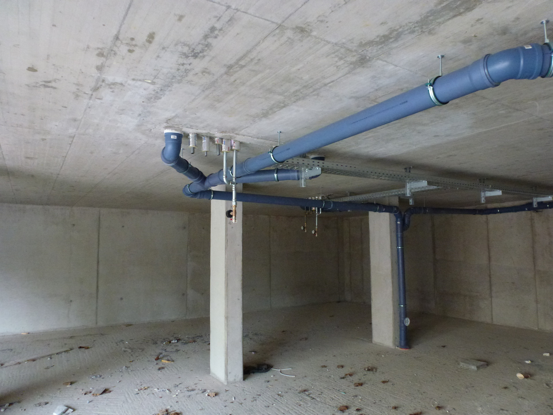 Bosouth_IT 79 Geschrieben 20. Januar 2020 Geschrieben 20. Januar 2020 (bearbeitet) Zurück zu der Baustelle in Weitmar ... Es scheint nicht allzuviel auf der Baustelle los zu sein. Haus 1: Hier noch einmal die tiefhängenden Ventile der der Bodenheizung (?) in der Tiefgarage von Haus 1, die zuletzt leider unscharf waren. Wer da einen hohen SUV fährt, wird Probleme bekommen, wenn er genau die Parkboxen hat ... (in circa 1,85 m Höhe ohne den Estrich / Bodenbelag ...) Die Ausschachtungen für die Versorgungsleitungen wurden wieder verfüllt. Der für die Ausschachtungen genutzte Minibagger und das Silo für den Innenputz sind abgeholt worden. Damit ist wieder ein freier Blick auf Haus 2 möglich. bearbeitet 20. Januar 2020 von Bosouth_IT Zitieren