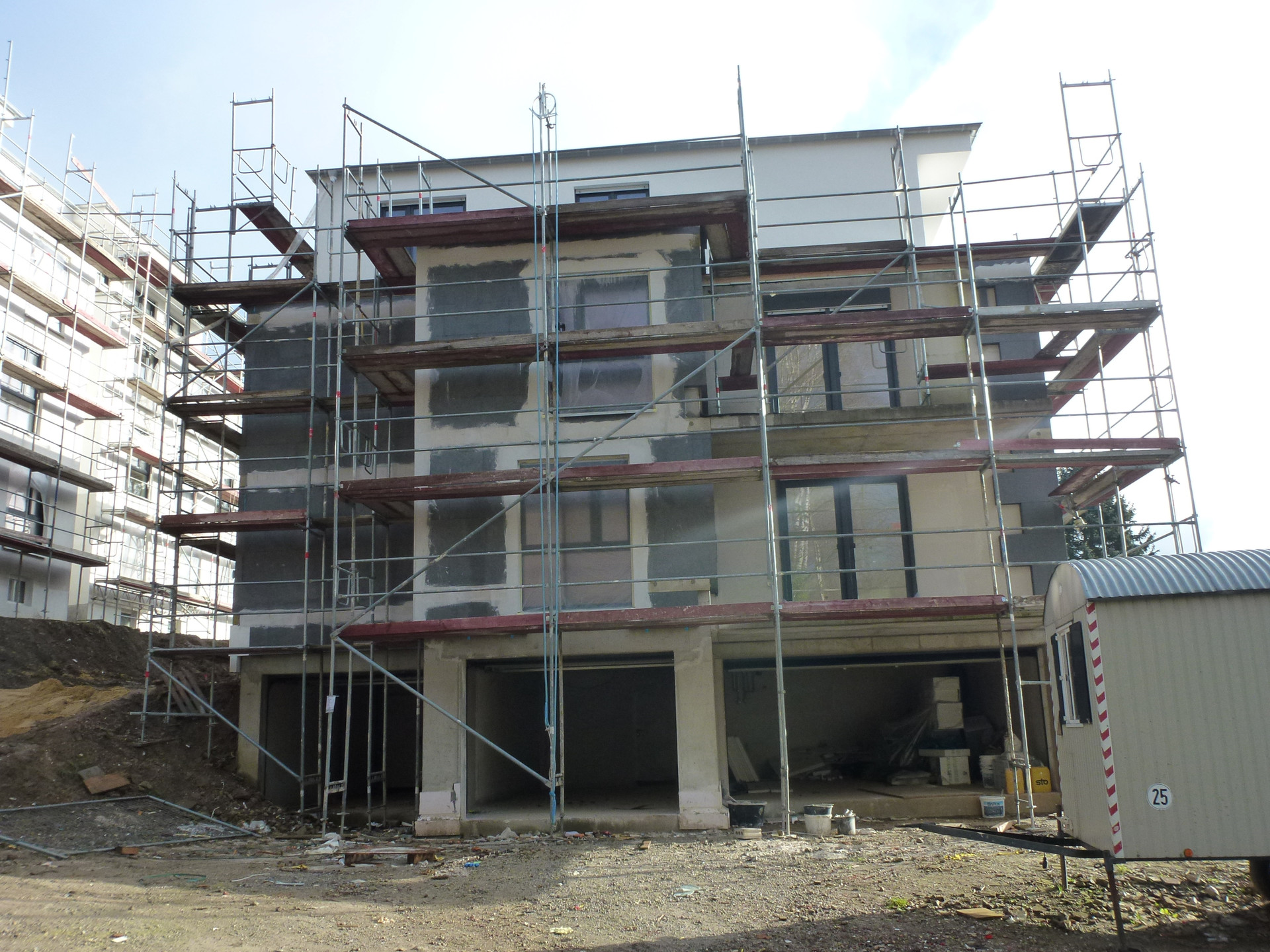 Bosouth_IT 79 Geschrieben 20. Januar 2020 Geschrieben 20. Januar 2020 (bearbeitet) Im Bereich der südlichen Steinkuhlstrasse - sehr nahe an der aktuellen Baustelle zum A448-Abzweig 🤔 - sind zwei neue Bauprojekte entstanden: Wie schon im Bild oben zu erkennen ist, wird auch direkt gegenüber (also links) eine Baustelle eingerichtet. Durch die Carsten Sachse GmbH (Witten) wird ein Reihenhaus mit Carport und Garage (laut Bauschild) errichtet. Die zeitgleich entstandenen Fotos von der A448-Baustelle sind im entsprechenden Beizrag zu finden .. bearbeitet 20. Januar 2020 von Bosouth_IT Zitieren