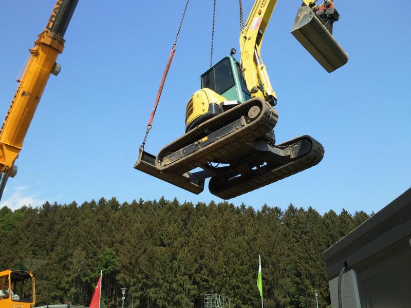 meisterLars 279 Geschrieben 16. Mai 2008 Geschrieben 16. Mai 2008 Ich hatte vor ein paar Tagen das Vergnügen, mir den brandneuen Vio57 anzuschauen und auch etwas auszuprobieren.Die Kabine ist echt mal durchdacht, Radio und Bedienungsanleitung wurden ins Dach verfrachtet, Der Bagger verfügt serienmäßig über Luftsitz, Klimaanlage, Betankungspumpe und Proportionalsteuerung Aber der allergrößte Kracher an dem Maschinchen ist die Hubleistung. Yanmar hat die Auslegerkinematik neu erfunden und patentieren lassen. Wir haben also eine knapp 1,6t wiegende Grabenwalze Bomag BMP851 angehangen und angehoben. Erst nur übers Schild, dann wurden wir mutiger und haben das Schild hochgemacht. Der Vio57 hebt die Grabenwalze trotzdem. Und als Krönung haben wir dann versucht, mit der Grabenwalze Karussel zu spielen, also einmal drehen. Danach mußte ich erstmal schlucken. Dieser 5,5t- Kurzheckbagger hat mit 1,6t keinerlei Probleme, das Drehen klappte einwandfrei!!! Ich hab noch keinen Bagger dieser Größe erlebt, der solche Gewichten so spielerisch hebt. Es soll ja sogar 7,5t Bagger geben, die so eine Grabenwalze kaum heben können... Zitieren