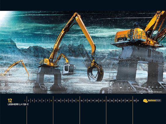 Bauforum24 1.491 Geschrieben 28. November 2013 Autor Geschrieben 28. November 2013 Das Wallpaper mit dem Heavy Equipment 2013 Dezember Motiv ist ab sofort zum kostenlosen Download verfügbar: Liebherr LH120CDas Heavy Equipment 2013 Dezember Motiv Liebherr LH120C - jetzt als Poster bestellenWallpaper Liebherr LH120C in verschiedenen AuflösungenJanuar: Liebherr T284 Mining TrucksFebruar: Bucyrus 495HR2März: Liebherr R9150 April: Hitachi ZX870XXL-3Mai: CAT 797FJuni: Liebherr R 9400Juli: CAT D11TAugust: Komatsu WA1200-3September: Liebherr R 954 C LongfrontOktober: Komatsu PC4000-6November: CAT 627GMit ihren extra langen Auslegern sorgen die Liebherr LH 120 C Materialumschlaggeräte für viel Bewegung an Seehäfen in der ganzen Welt. Ausgestattet mit einem Unterwagen in sogenannter ?Gantry"-Bauweise auf Raupenlaufwerken, muten die schlanken Giganten majestätisch und futuristisch zugleich an. Über 500 PS Motorleistung und eine hydraulisch verstellbare Kabinenerhöhung ermöglichen dem Bediener beste Arbeitsbedingungen und perfekte Sicht. Die futuristischen Liebherr Großhydraulikbagger sind der perfekte Abschluss für das Heavy Equipment Kalenderjahr 2013. Zum kostenlosen Wallpaper Download... Zitieren