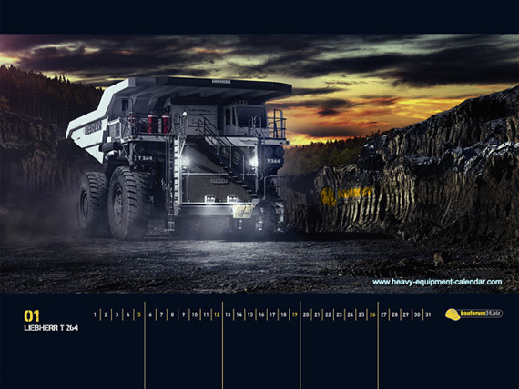 Bauforum24 1.491 Geschrieben 27. Dezember 2013 Autor Geschrieben 27. Dezember 2013 Das Wallpaper mit dem ersten Heavy Equipment 2014 Motiv ist ab sofort zum kostenlosen Download verfügbar: Liebherr T 264Das Heavy Equipment 2014 Januar Motiv Liebherr T 264 - jetzt als Poster bestellenWallpaper Liebherr LH120C in verschiedenen AuflösungenMit rund 400 Tonnen Kampfgewicht geht das Heavy Equipment Calendar Jahr 2014 standesgemäß los. Soviel bringt der beladene Liebherr T 264 auf die Waage. Das sind umgerechnet locker zehn Jets vom Kaliber einer Boeing 737. Liebherrs Muldenkipper sind die schweren Jungs in den größten Minen der Welt. Mit 2.700 PS aus 72 Litern Hubraum können sie bei Bedarf auf bis zu 64 km/h beschleunigen. Als Option gibt es ein Kollisionsradar, was durchaus Sinn macht. Bei einem Reifendurchmesser von rund 3,50 Meter möchte man mit dem T 264 besser nicht auf Tuchfühlung gehen. Zum kostenlosen Wallpaper Download... Zitieren